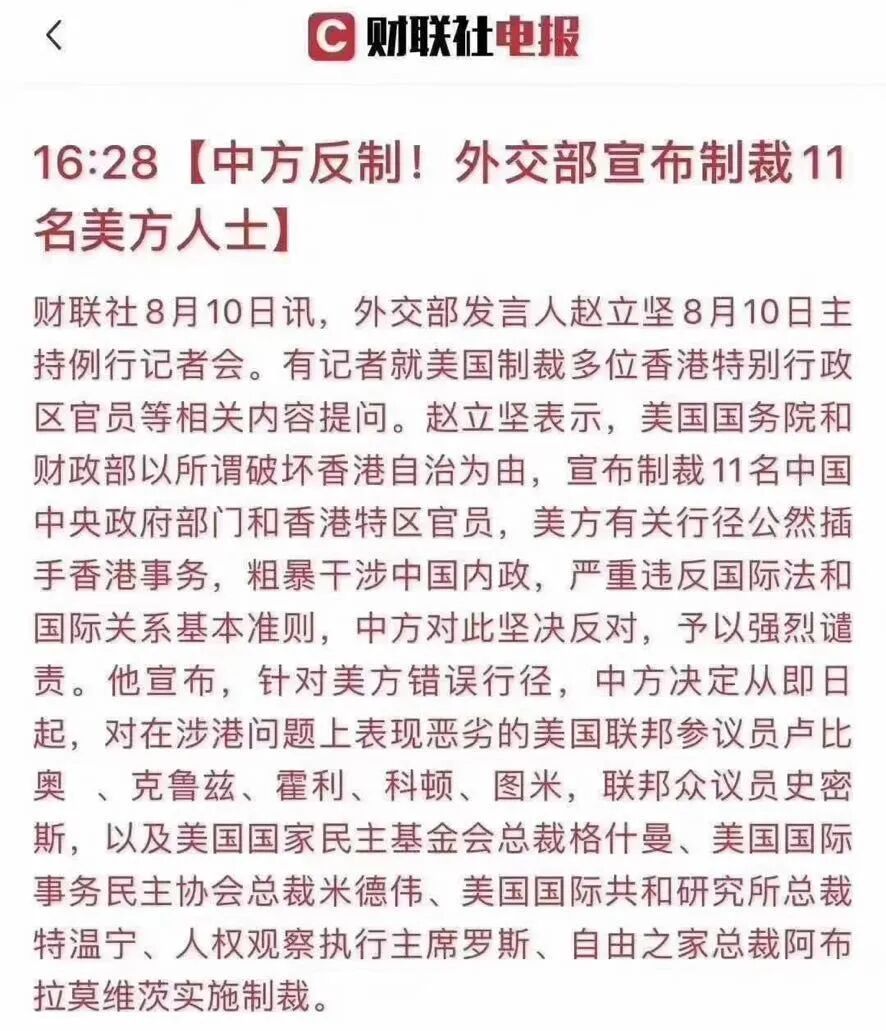 对在涉港问题上表现恶劣的美方人员实施制裁: