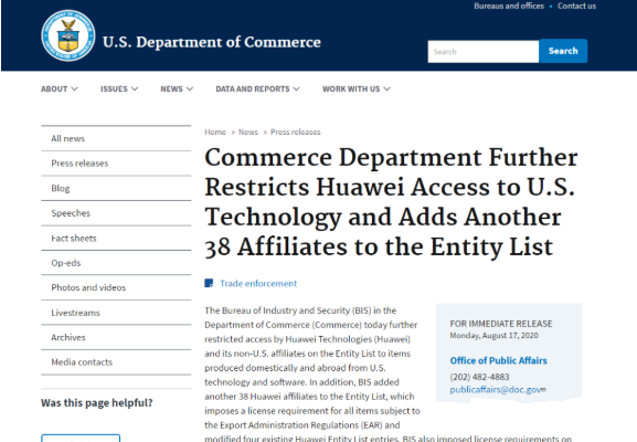 BIS的这次制裁,加大了力度和深度,涵盖了华为全球资源,影响还有待深入观察。