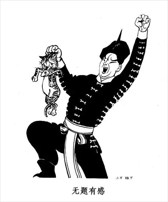 丁聪最初显露出的这种社会讽刺的特点,在后来的创作中蔚为大观,它与政治讽刺密不可分,融为一体,成为他的创作中最有分量的作品。
