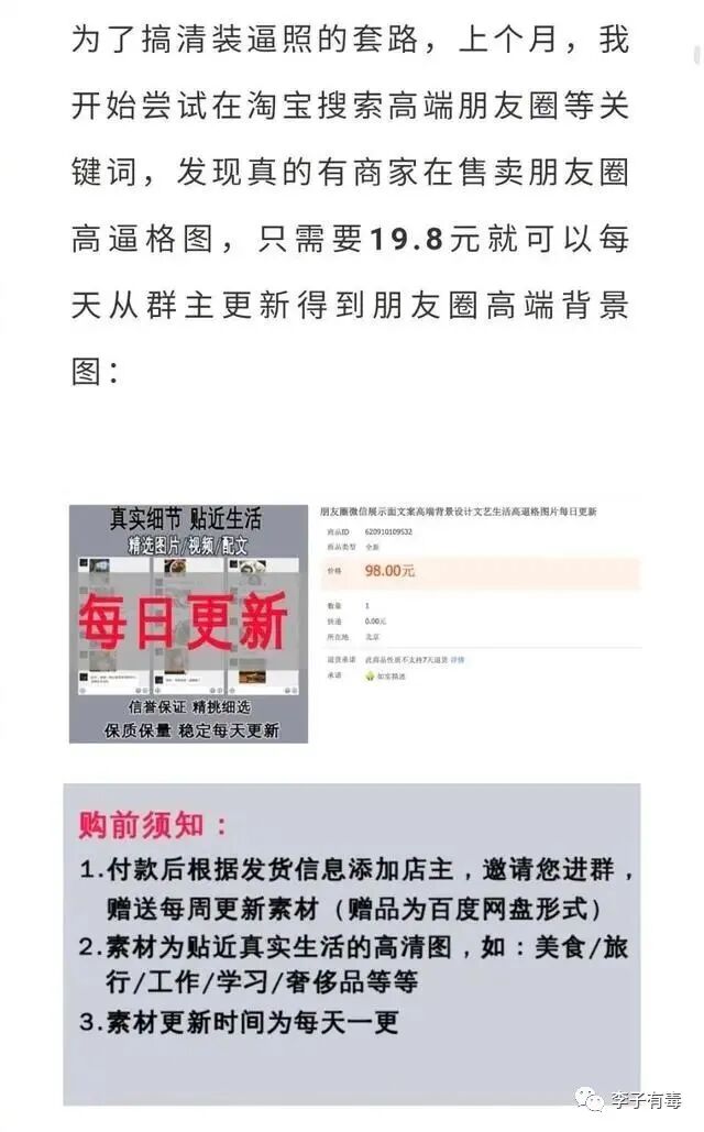 其实指的就是那些靠盗图来美化自己的朋友圈,