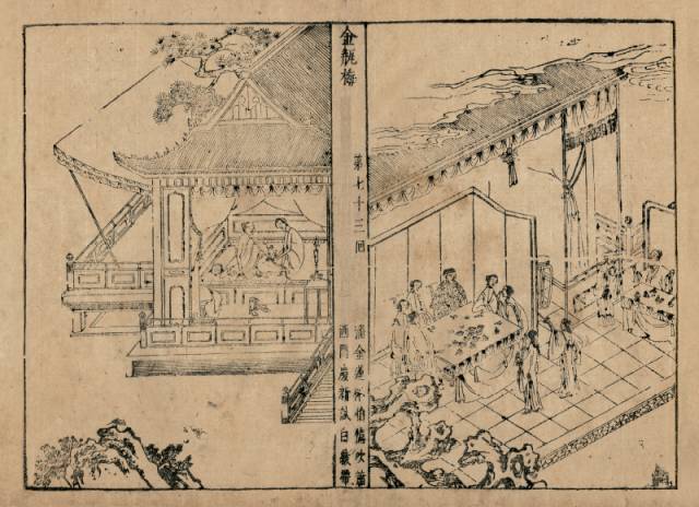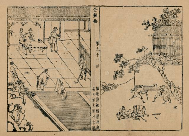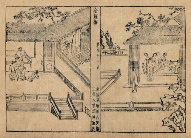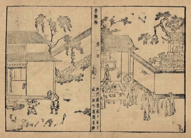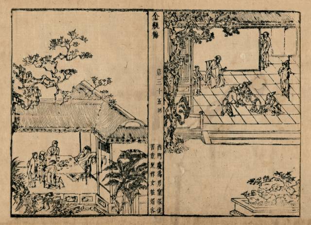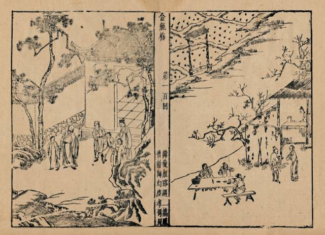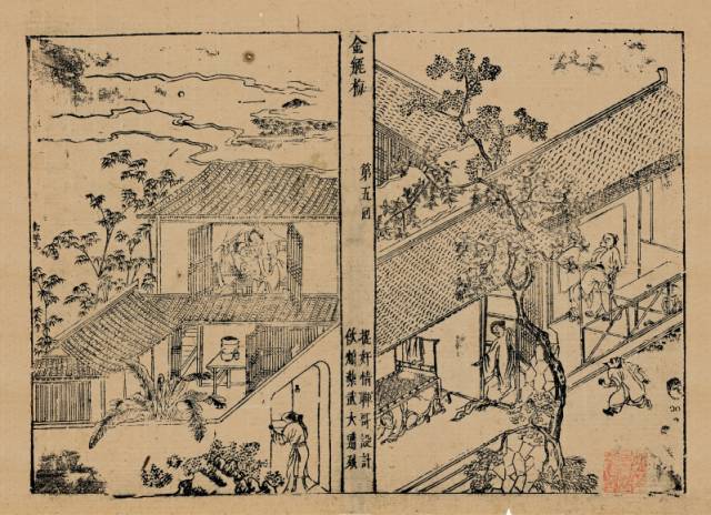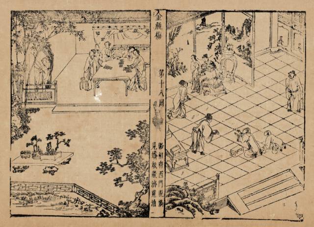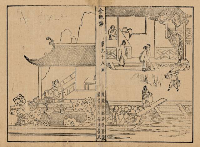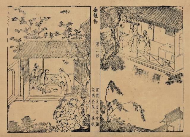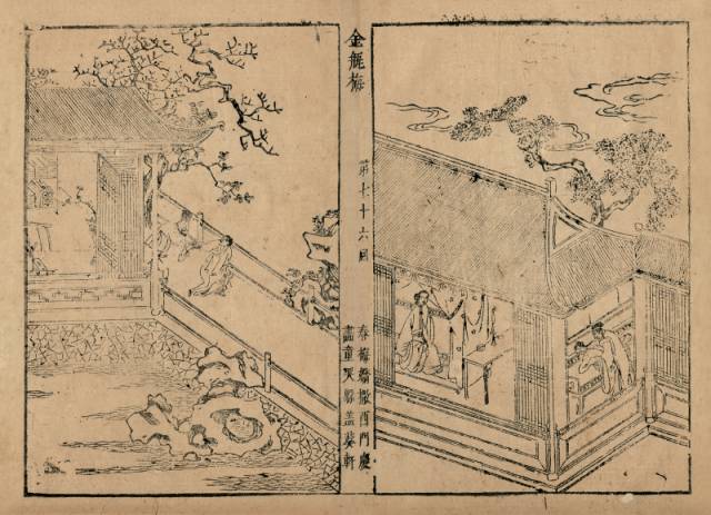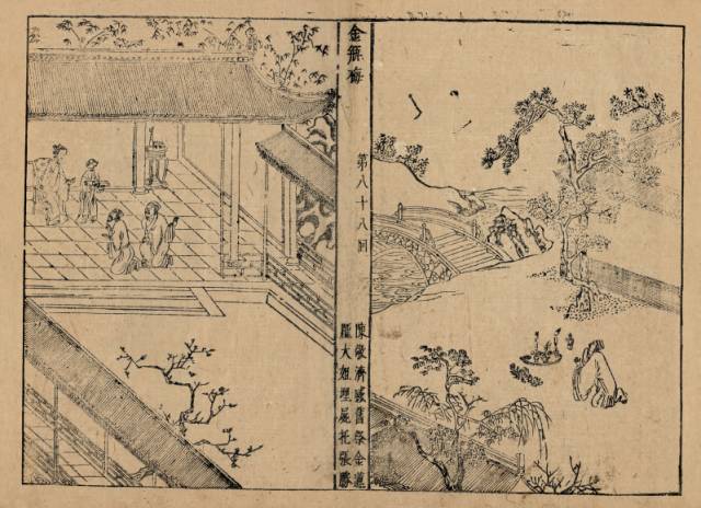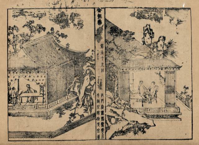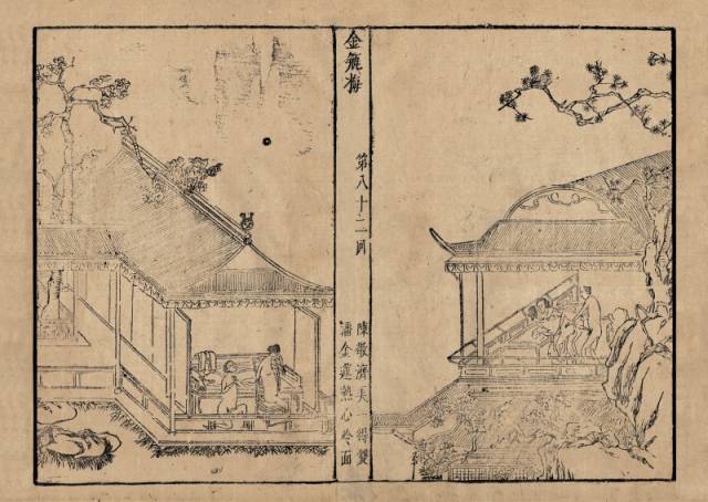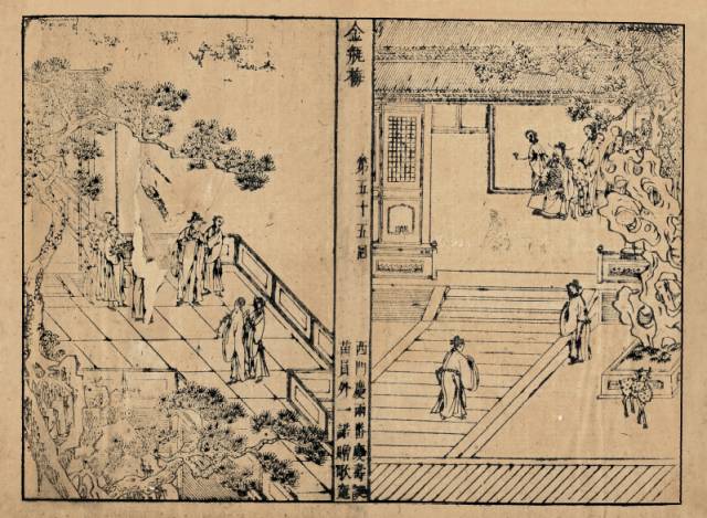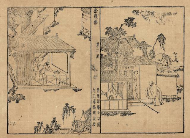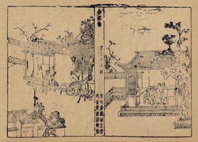 现藏于天津图书馆的明崇祯本《新刻绣像批评金瓶梅》,也称“天图本”,每回前有插图两幅,共200幅,文图精美,文物/学术价值极高,被列入第二批《国家珍贵古籍名录》(06599)。