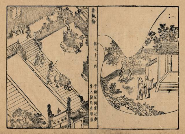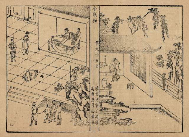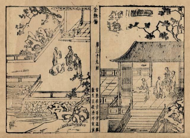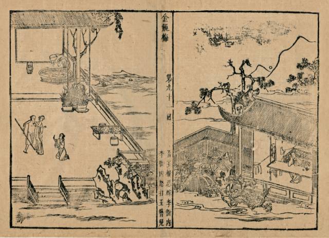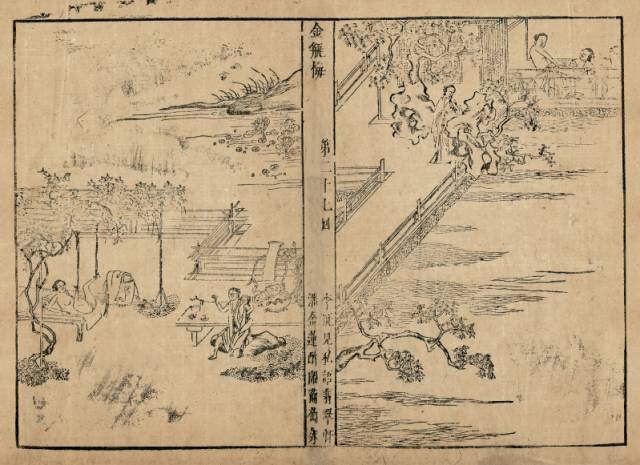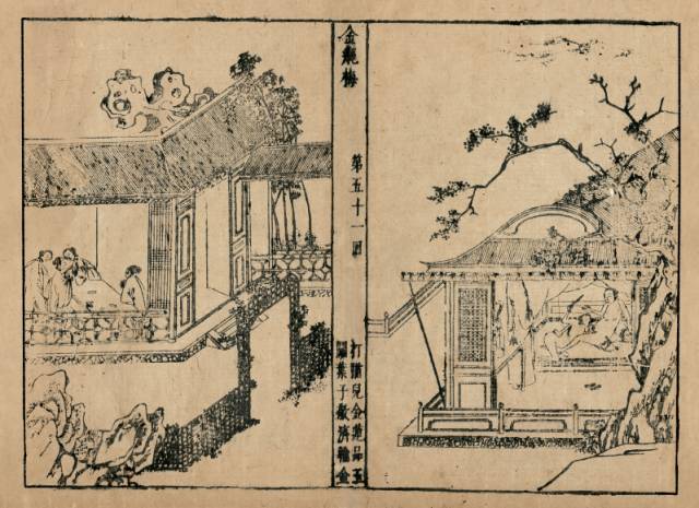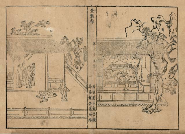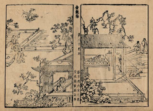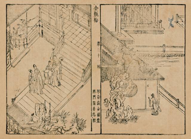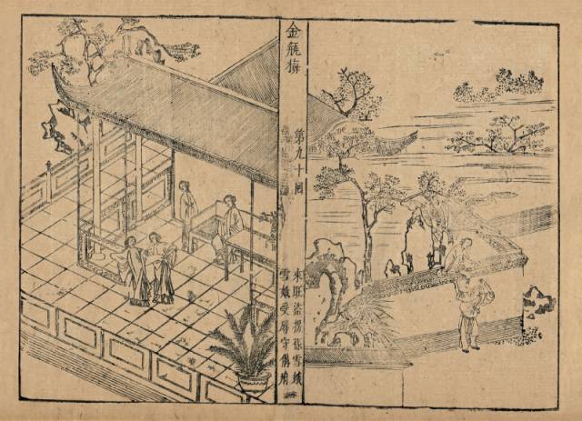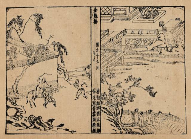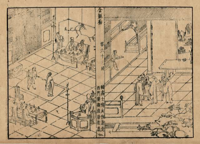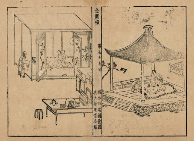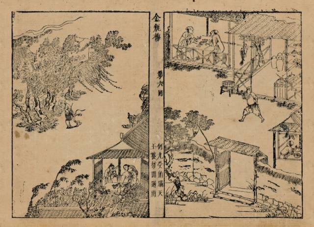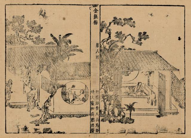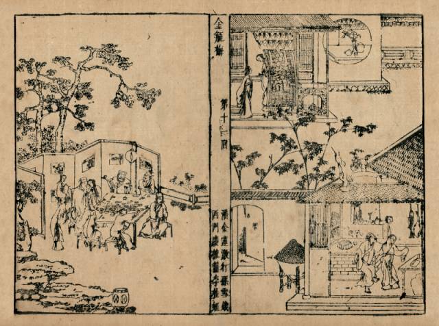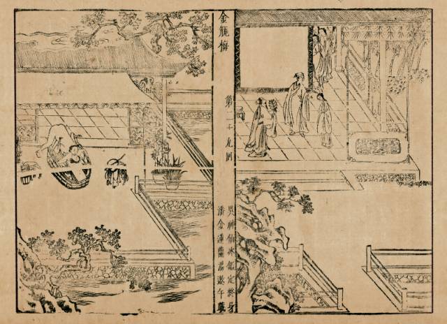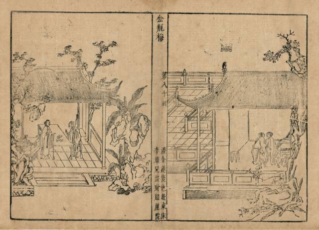 现藏于天津图书馆的明崇祯本《新刻绣像批评金瓶梅》,也称“天图本”,每回前有插图两幅,共200幅,文图精美,文物/学术价值极高,被列入第二批《国家珍贵古籍名录》(06599)。