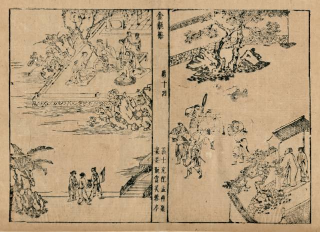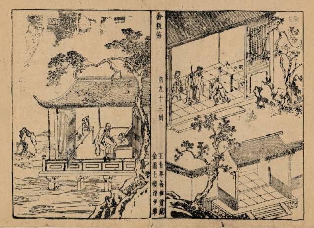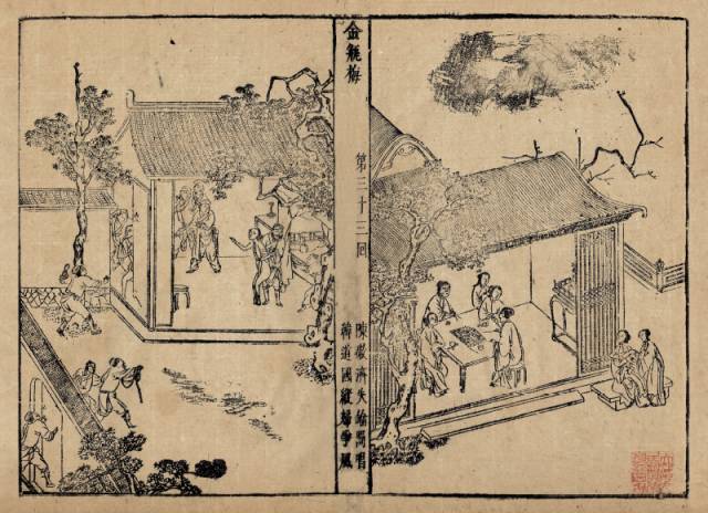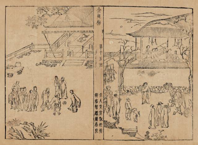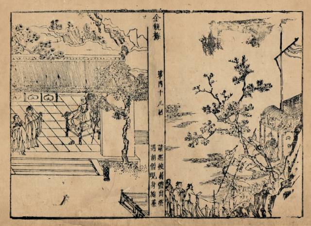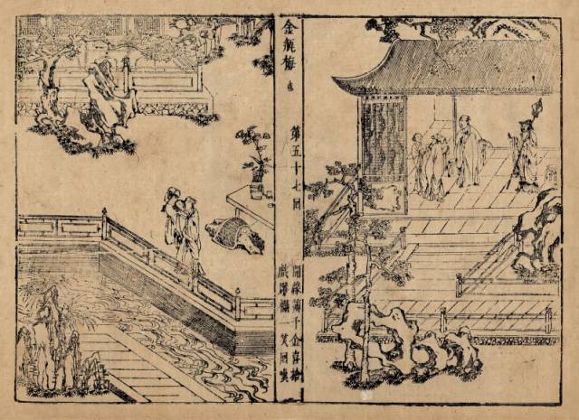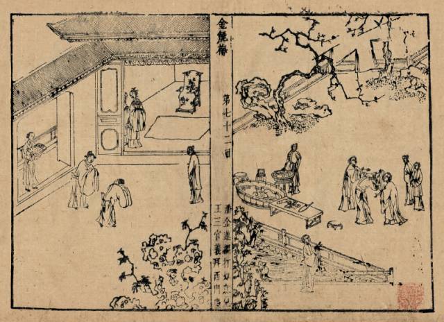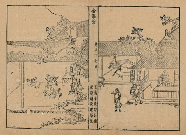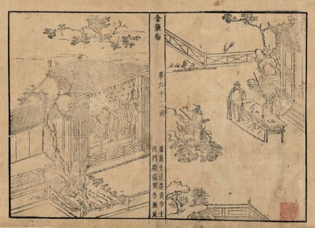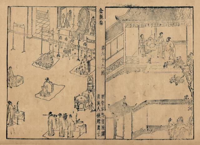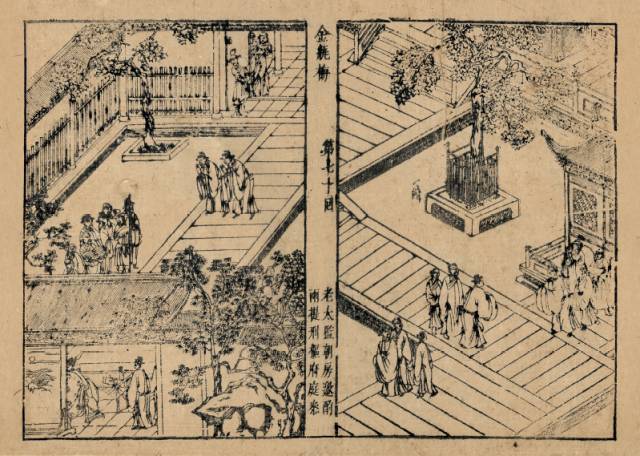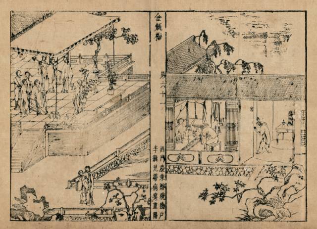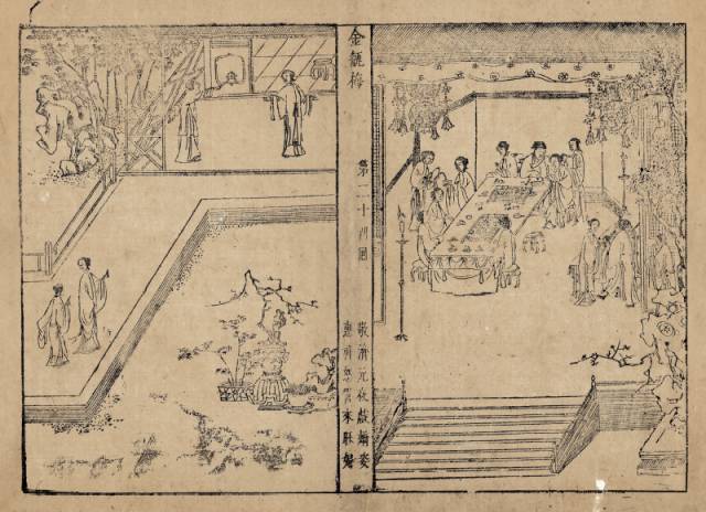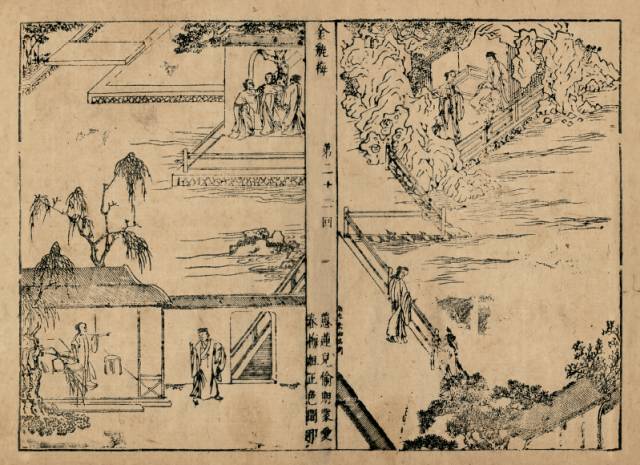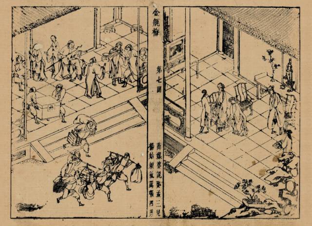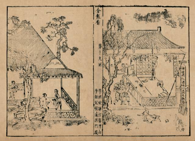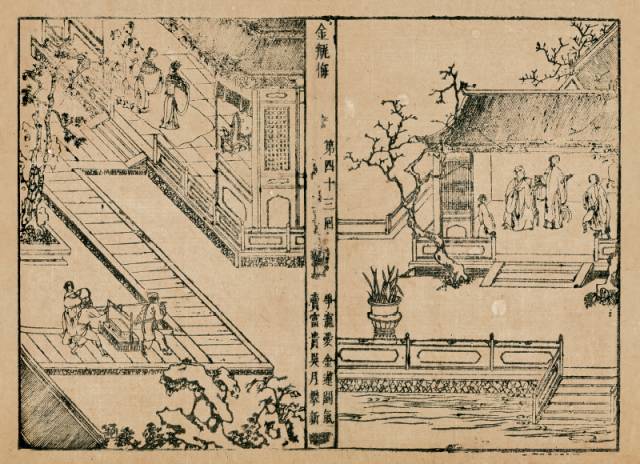 现藏于天津图书馆的明崇祯本《新刻绣像批评金瓶梅》,也称“天图本”,每回前有插图两幅,共200幅,文图精美,文物/学术价值极高,被列入第二批《国家珍贵古籍名录》(06599)。