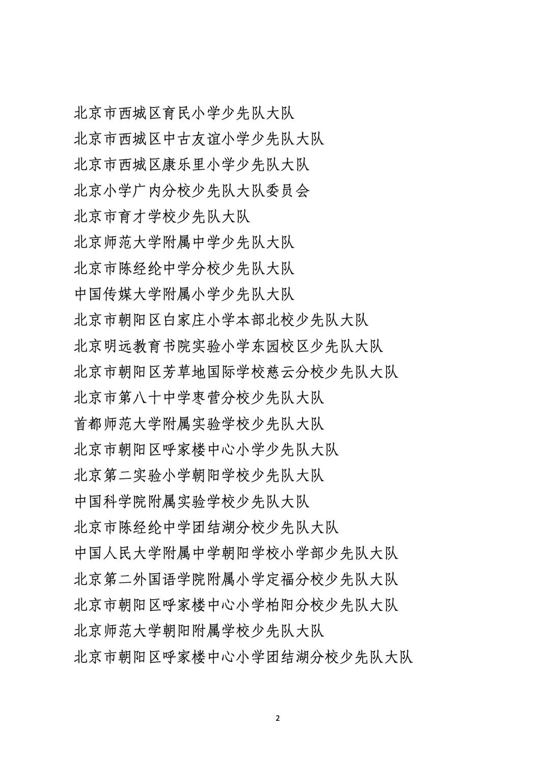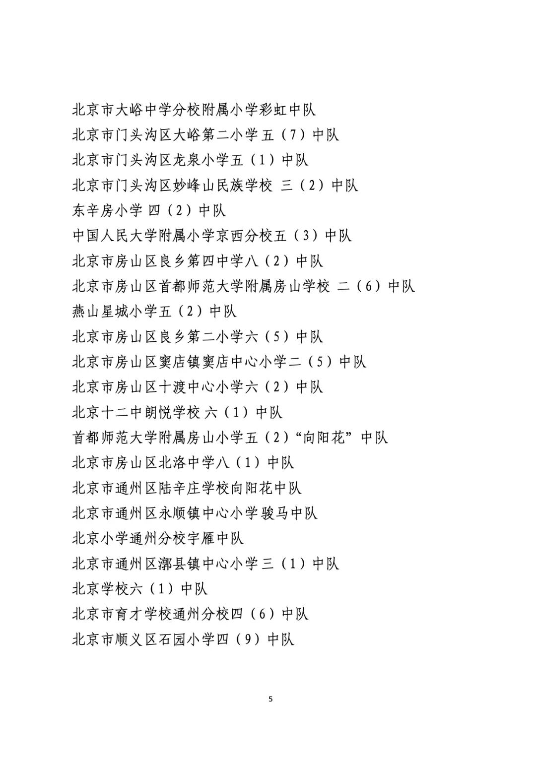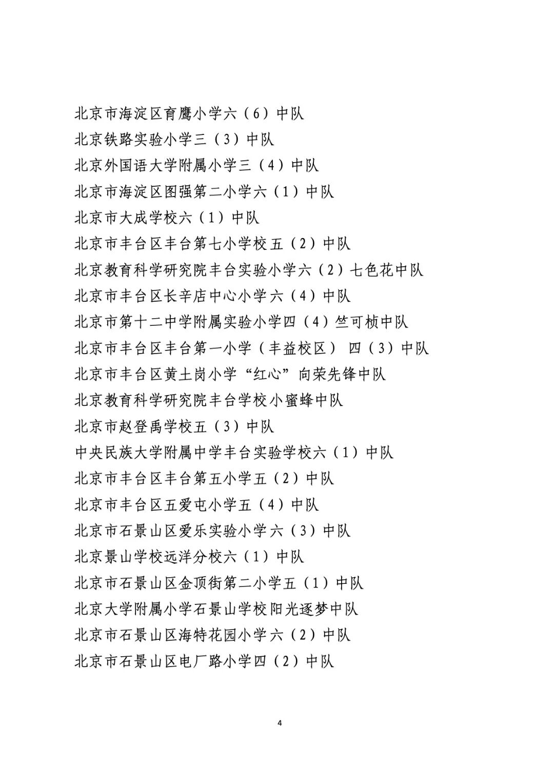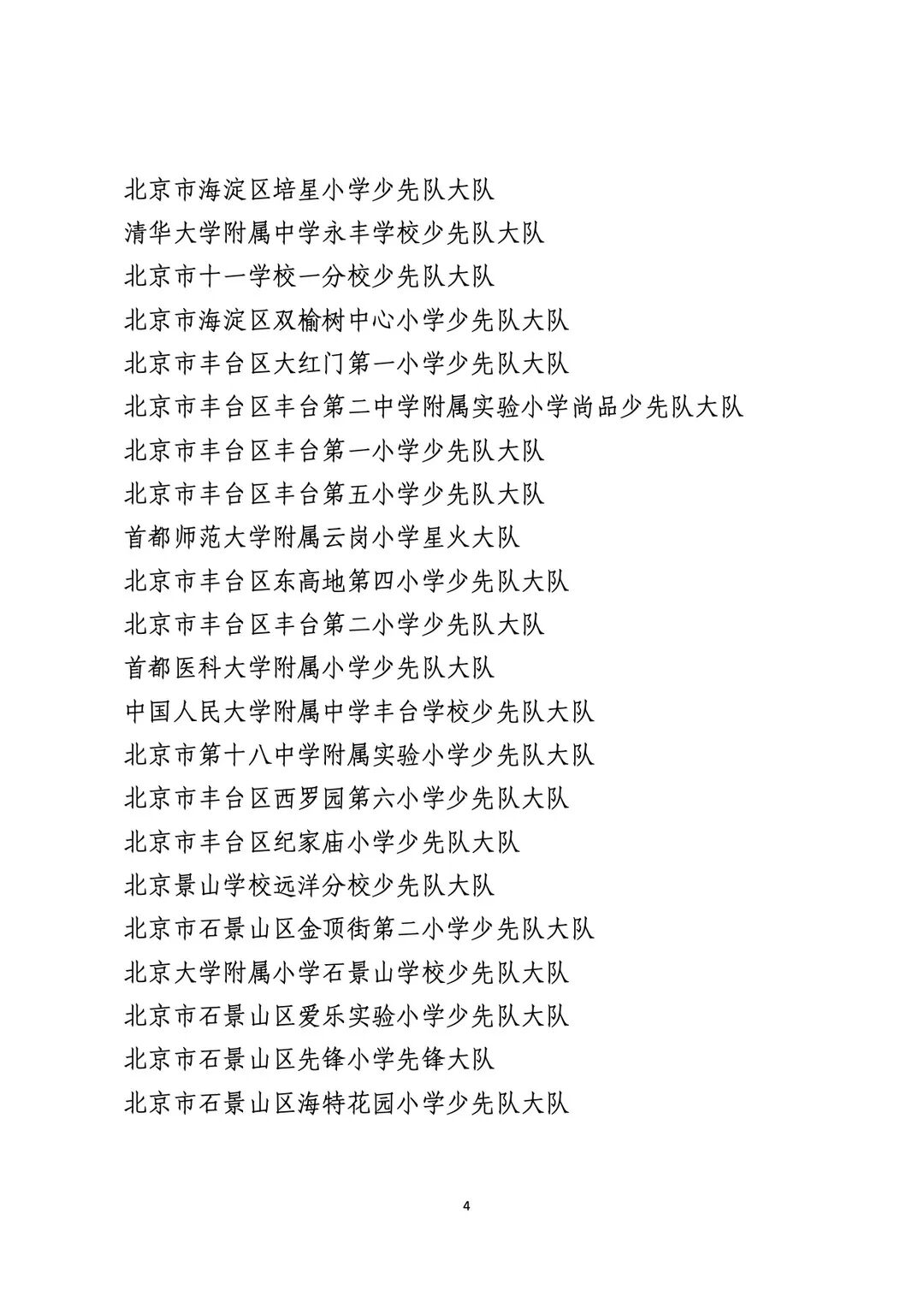 2021年度北京市“红领巾奖章”四星章集体(大队)表彰名单