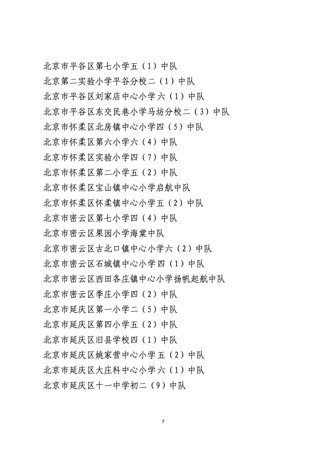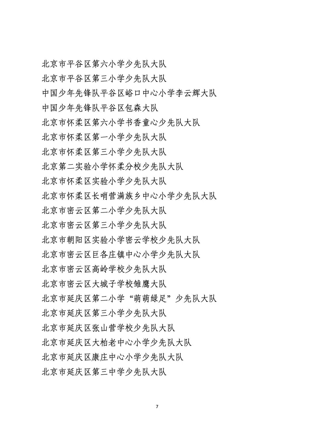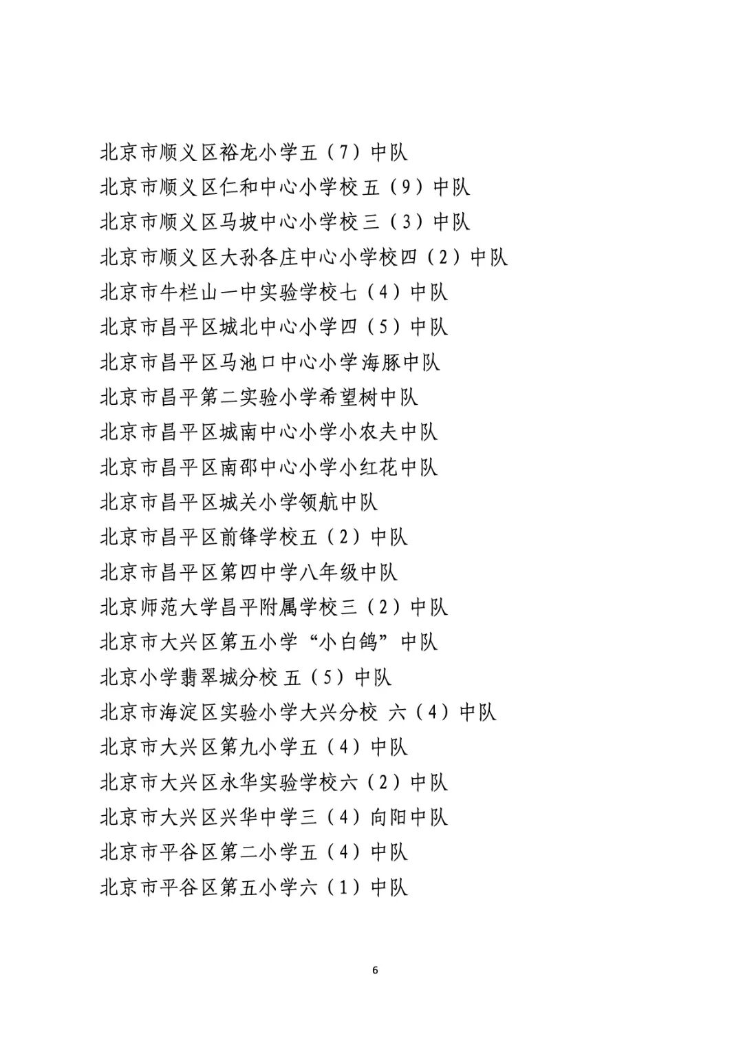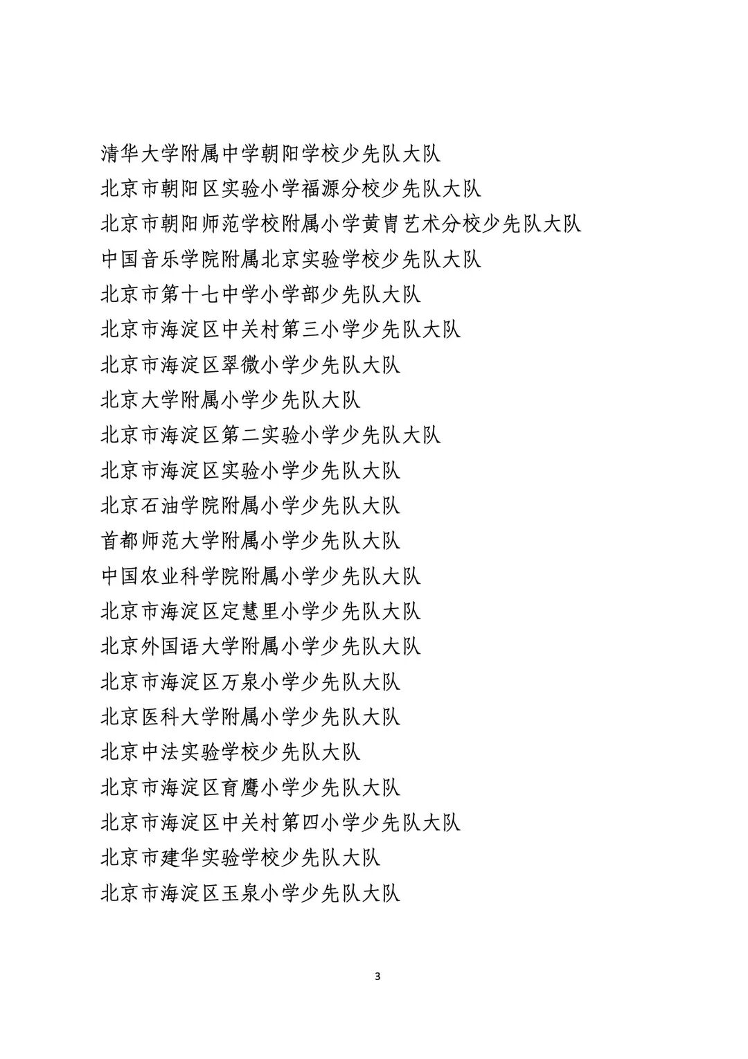 2021年度北京市“红领巾奖章”四星章集体(大队)表彰名单