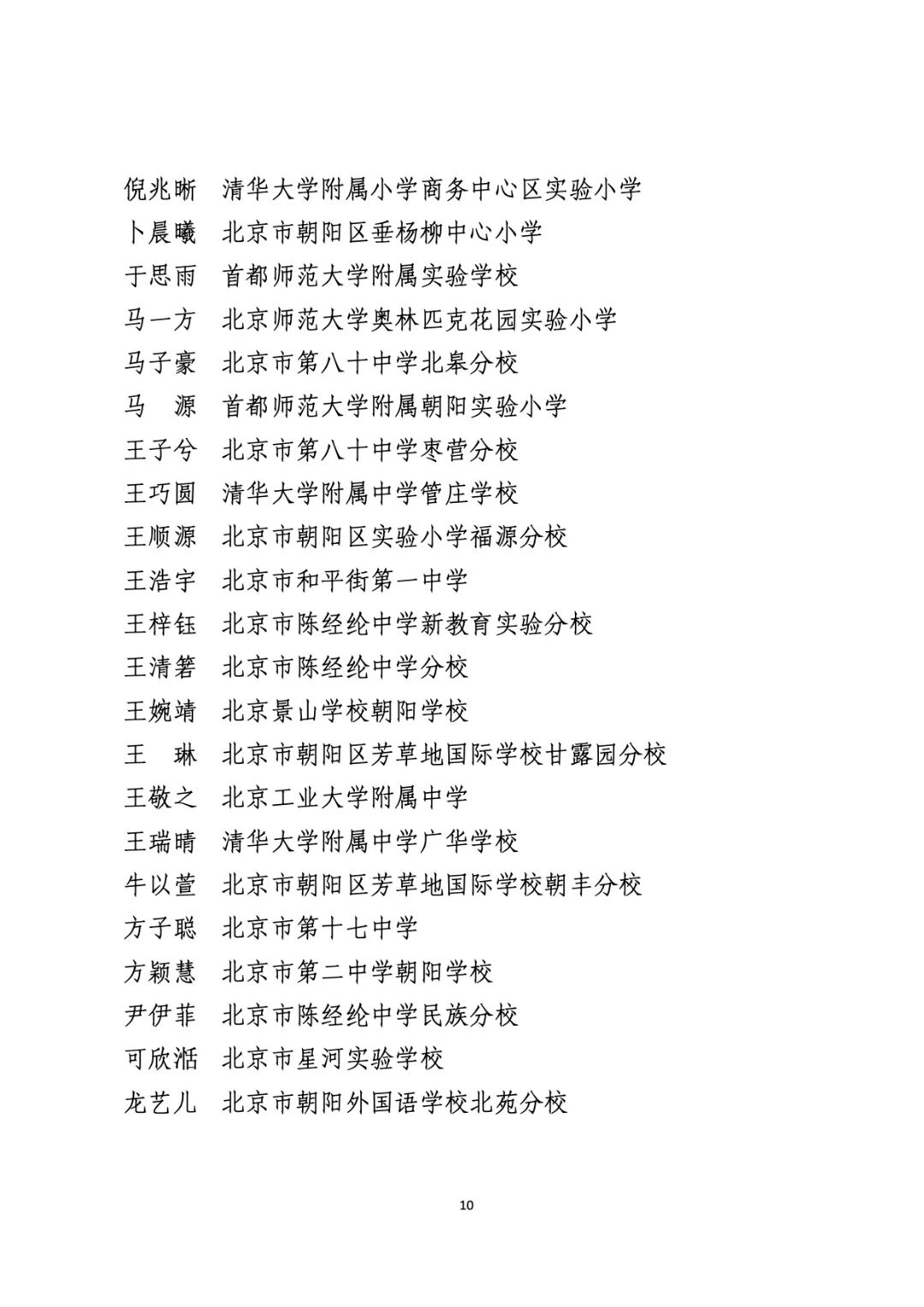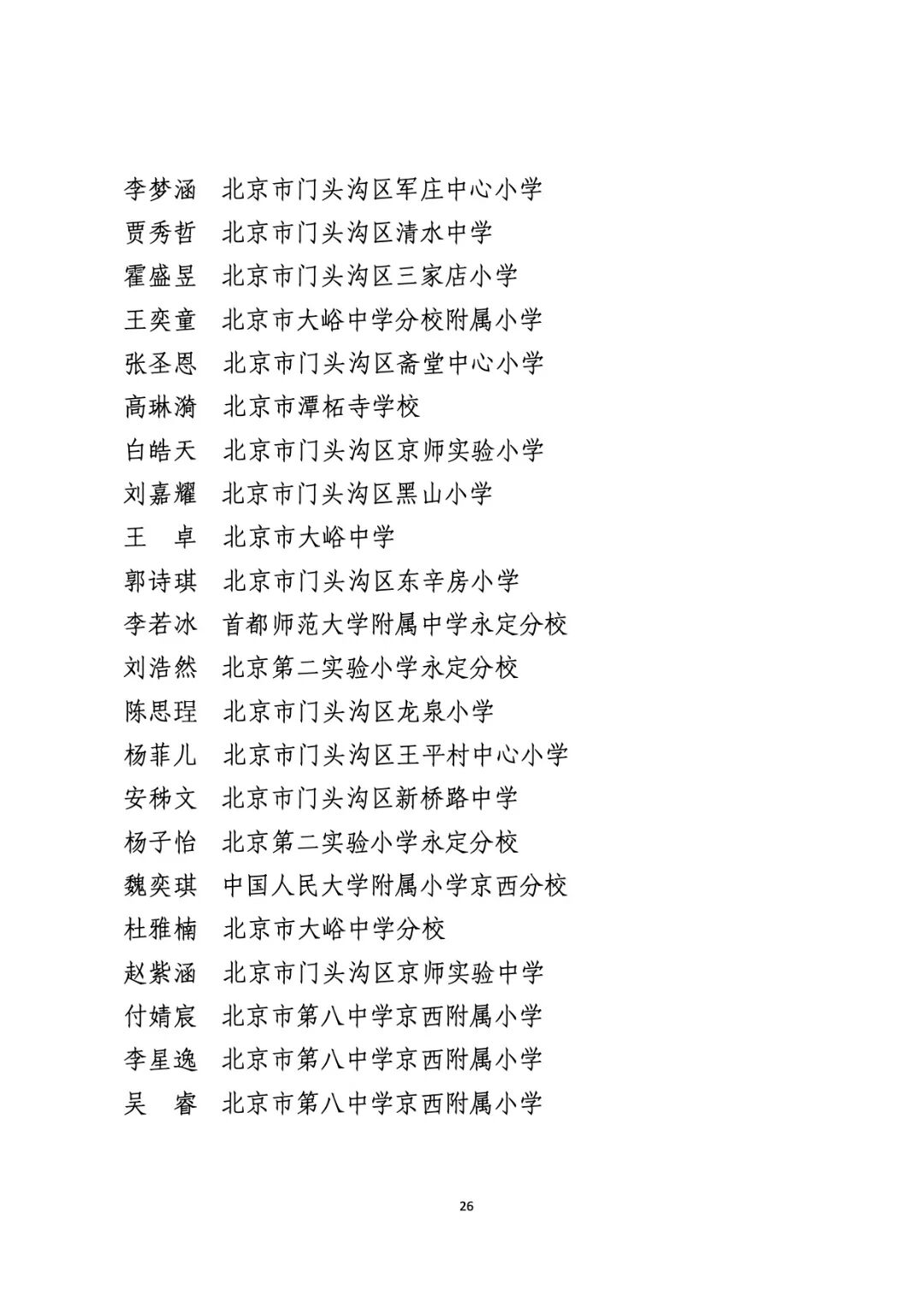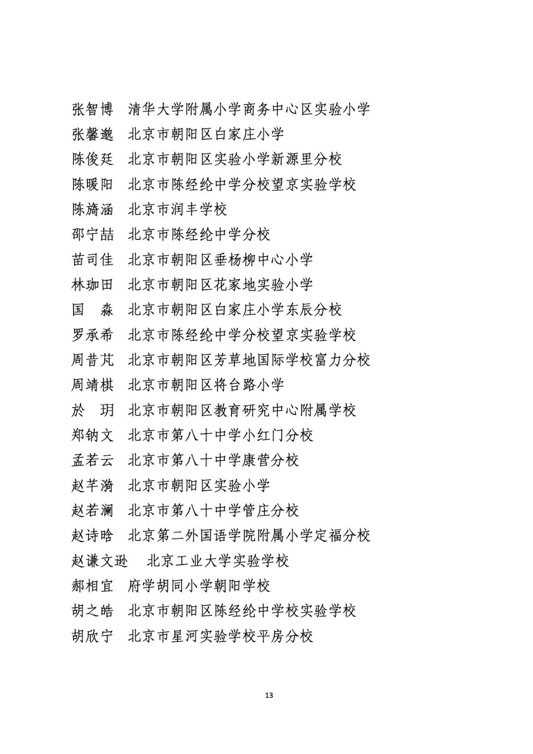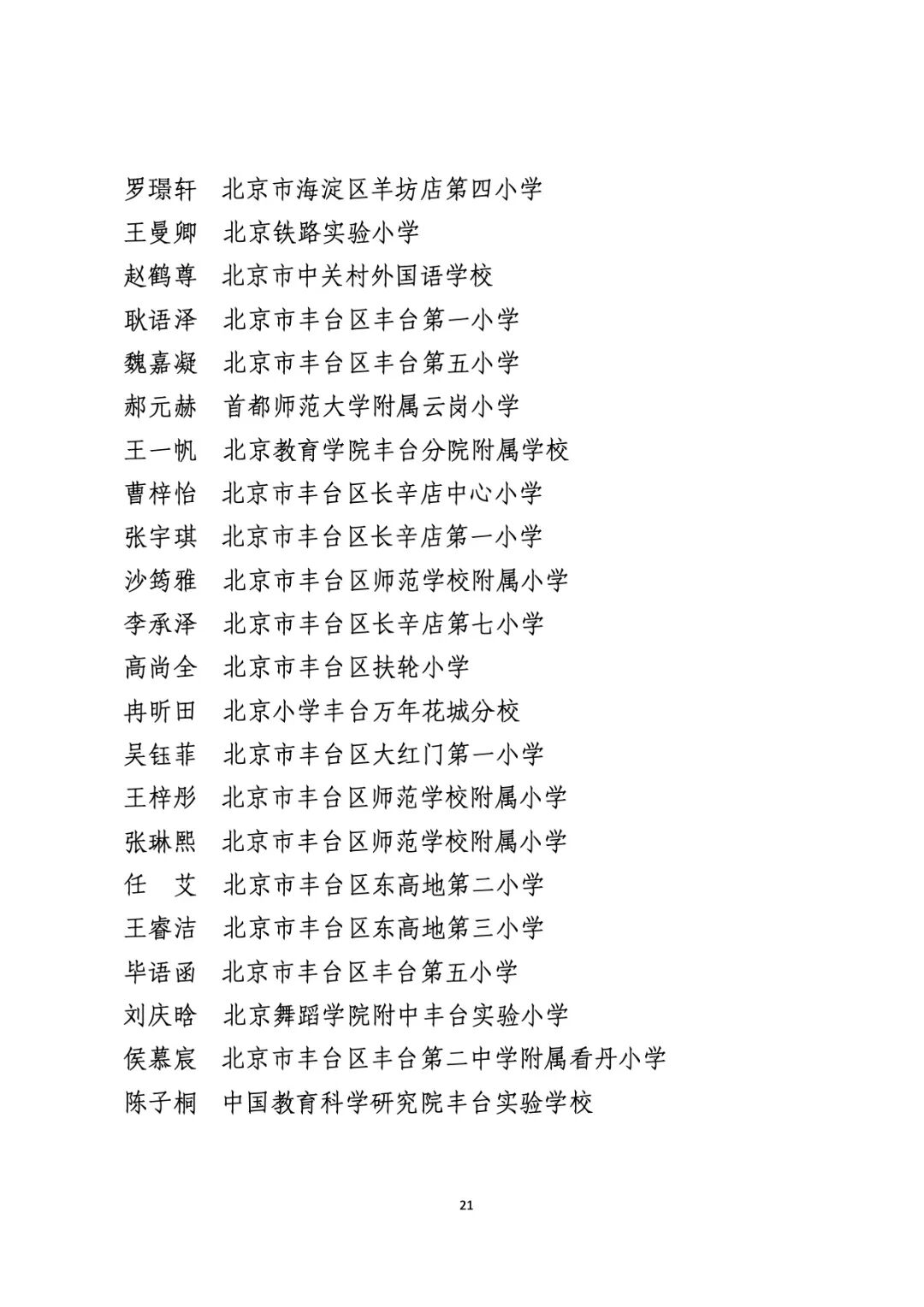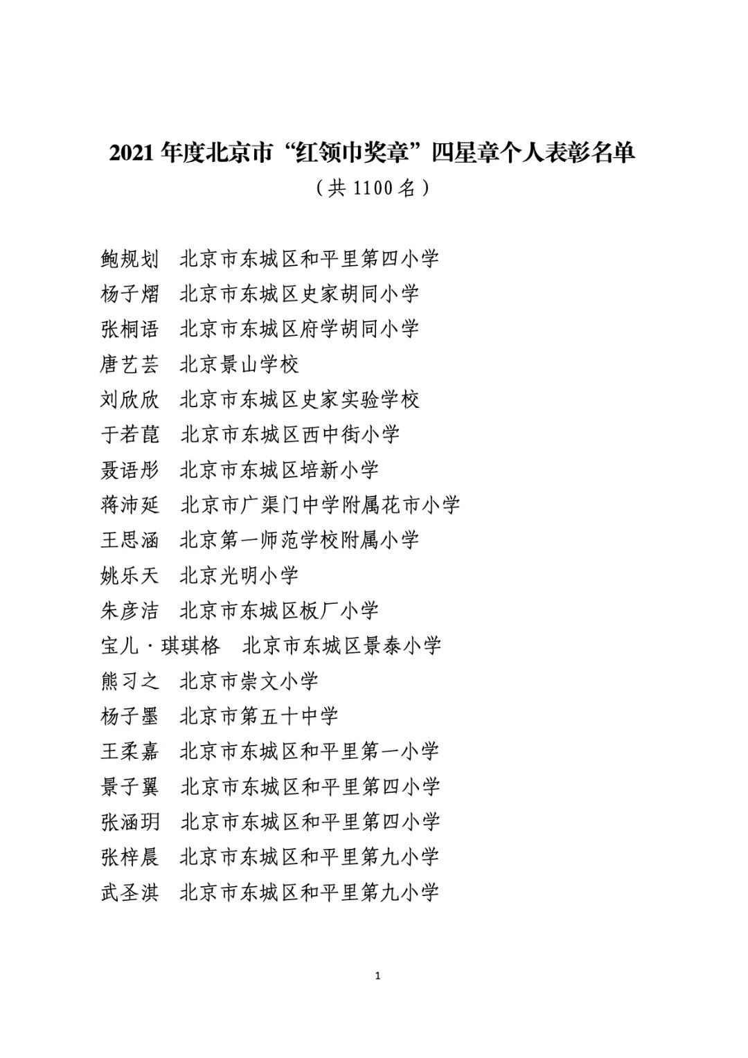 2021年度北京市“红领巾奖章”四星章个人表彰名单
