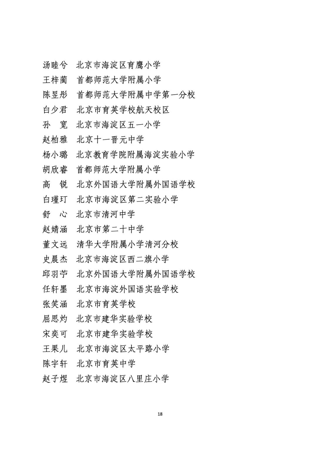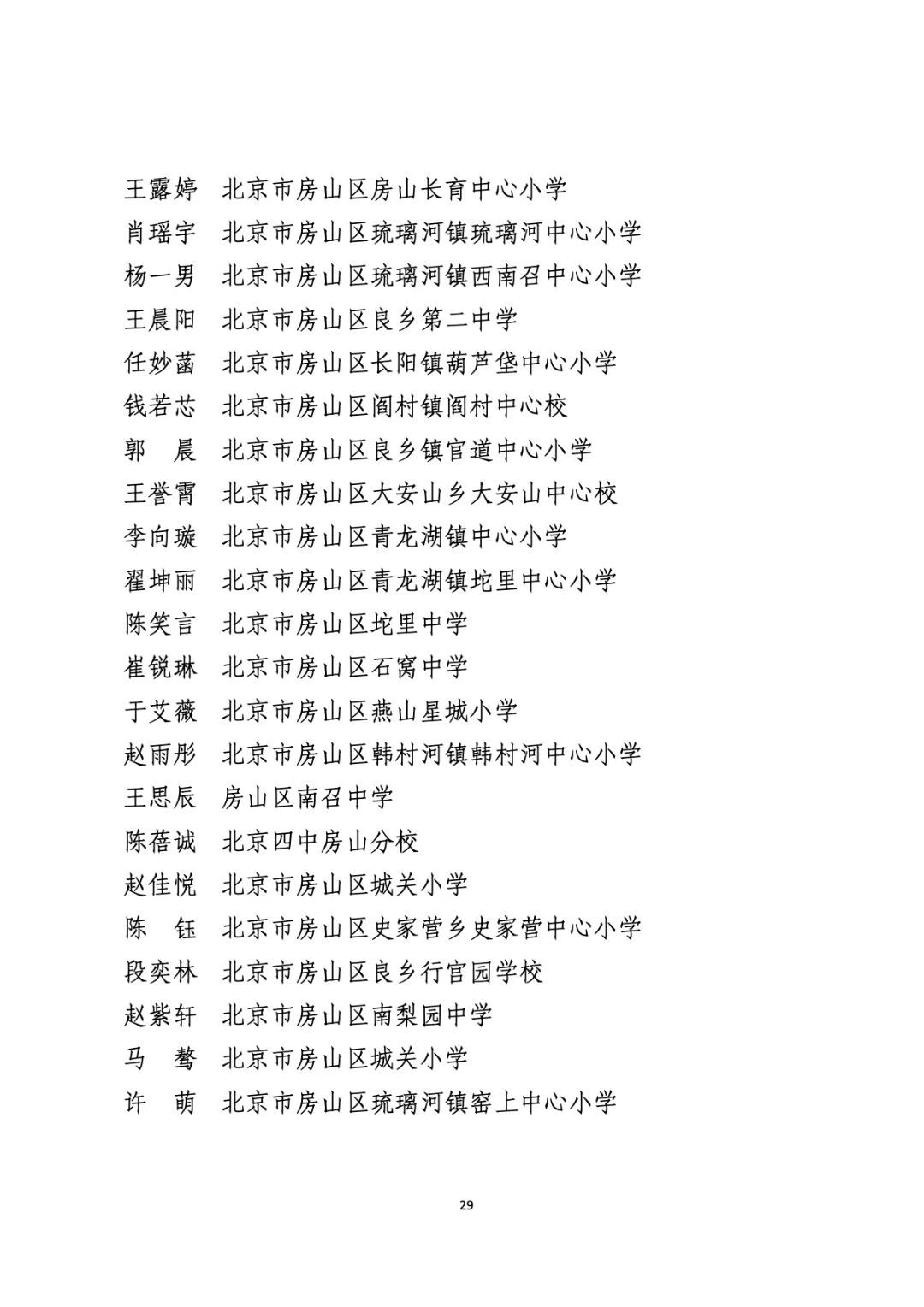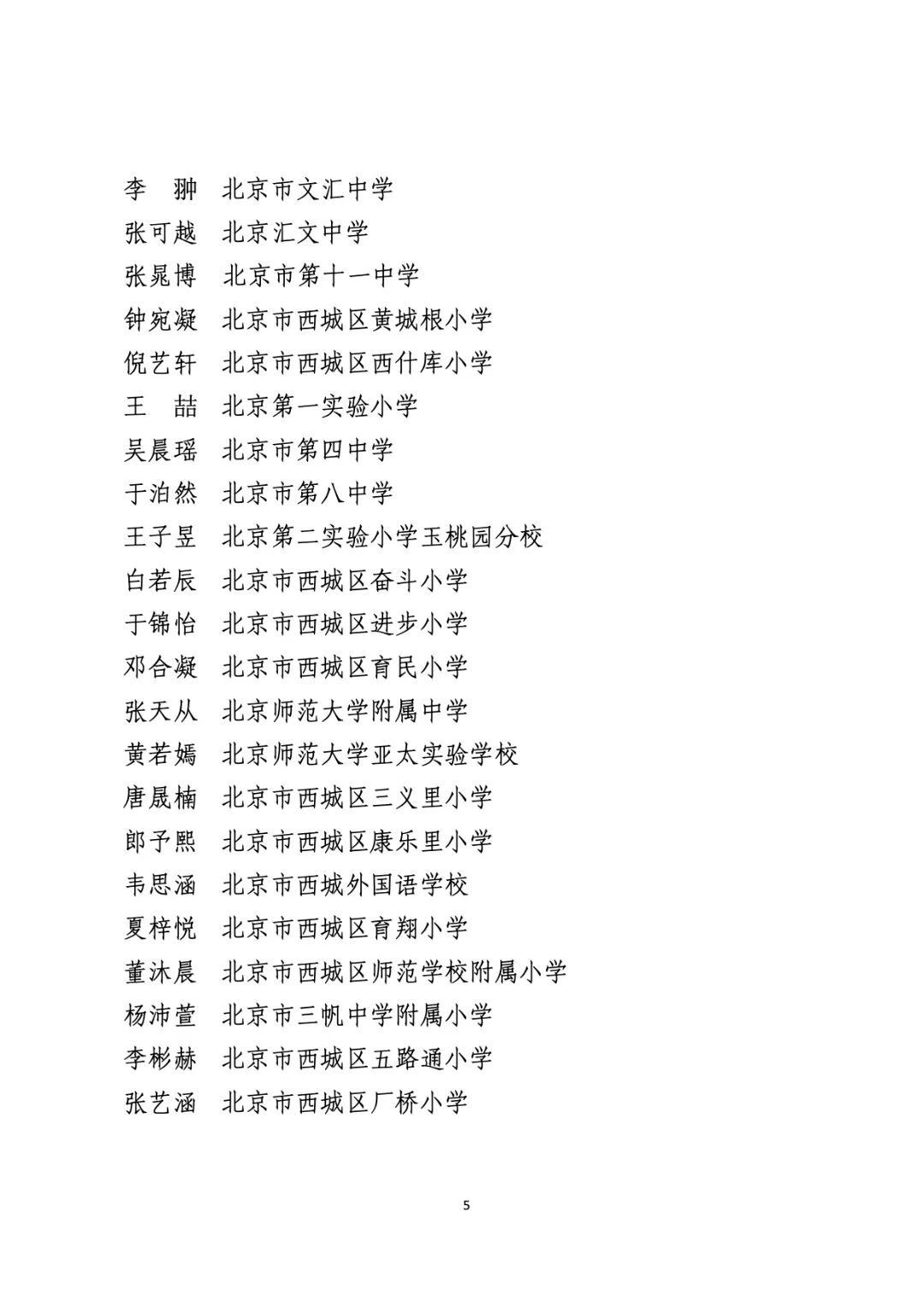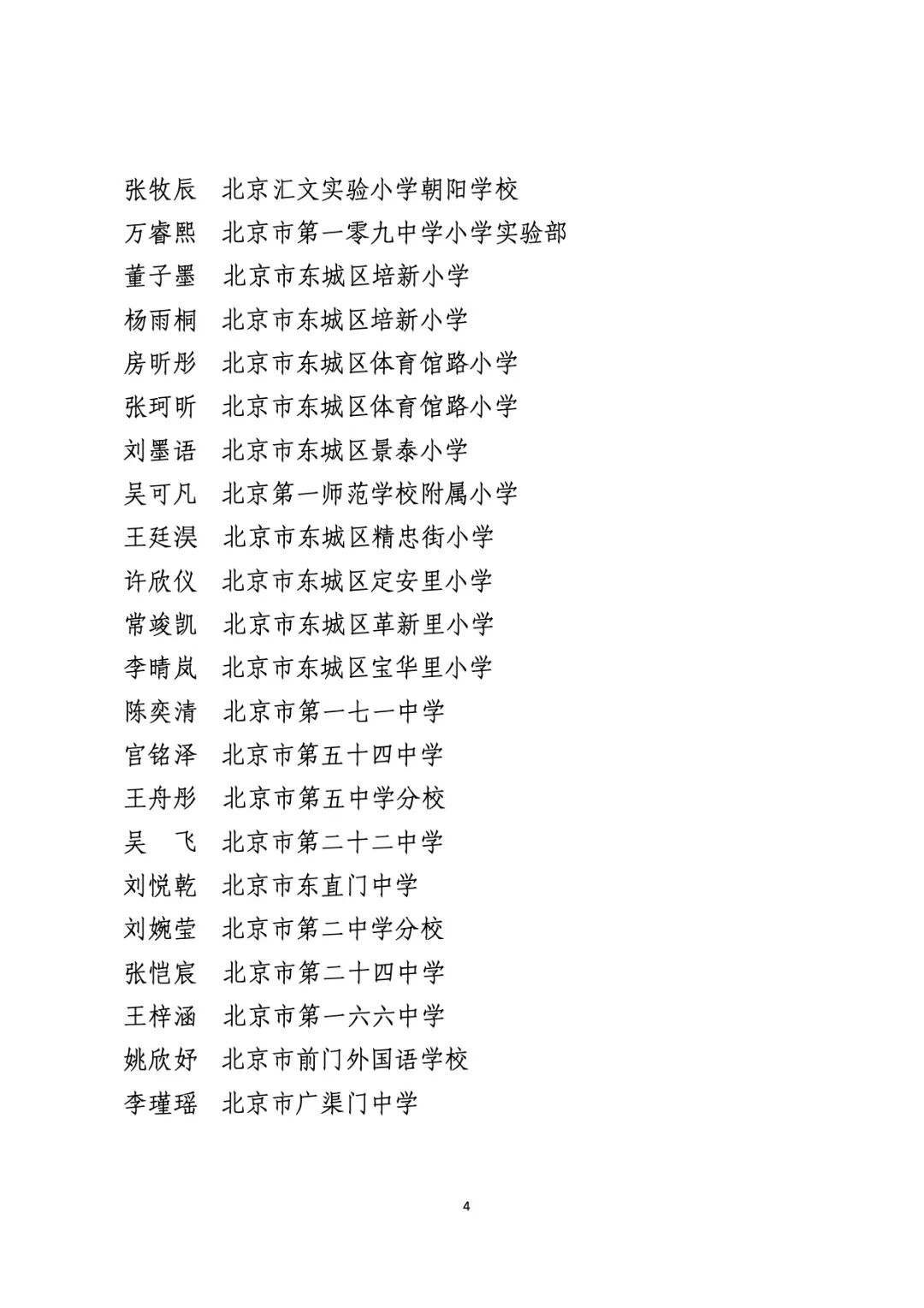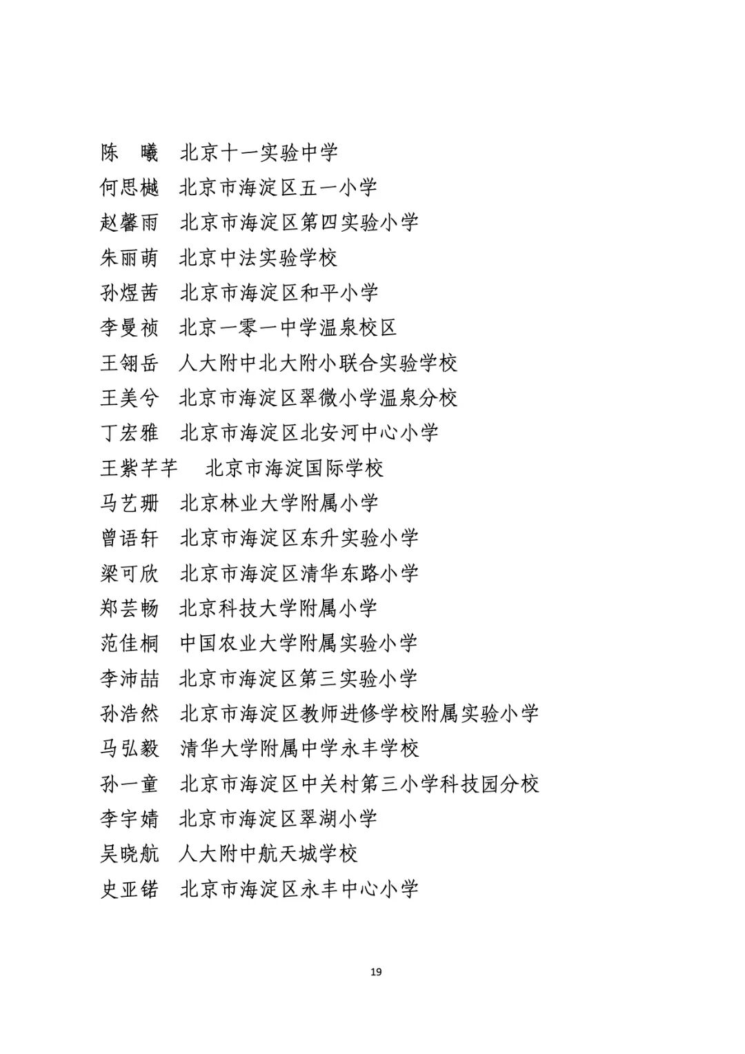 2021年度北京市“红领巾奖章”四星章个人表彰名单