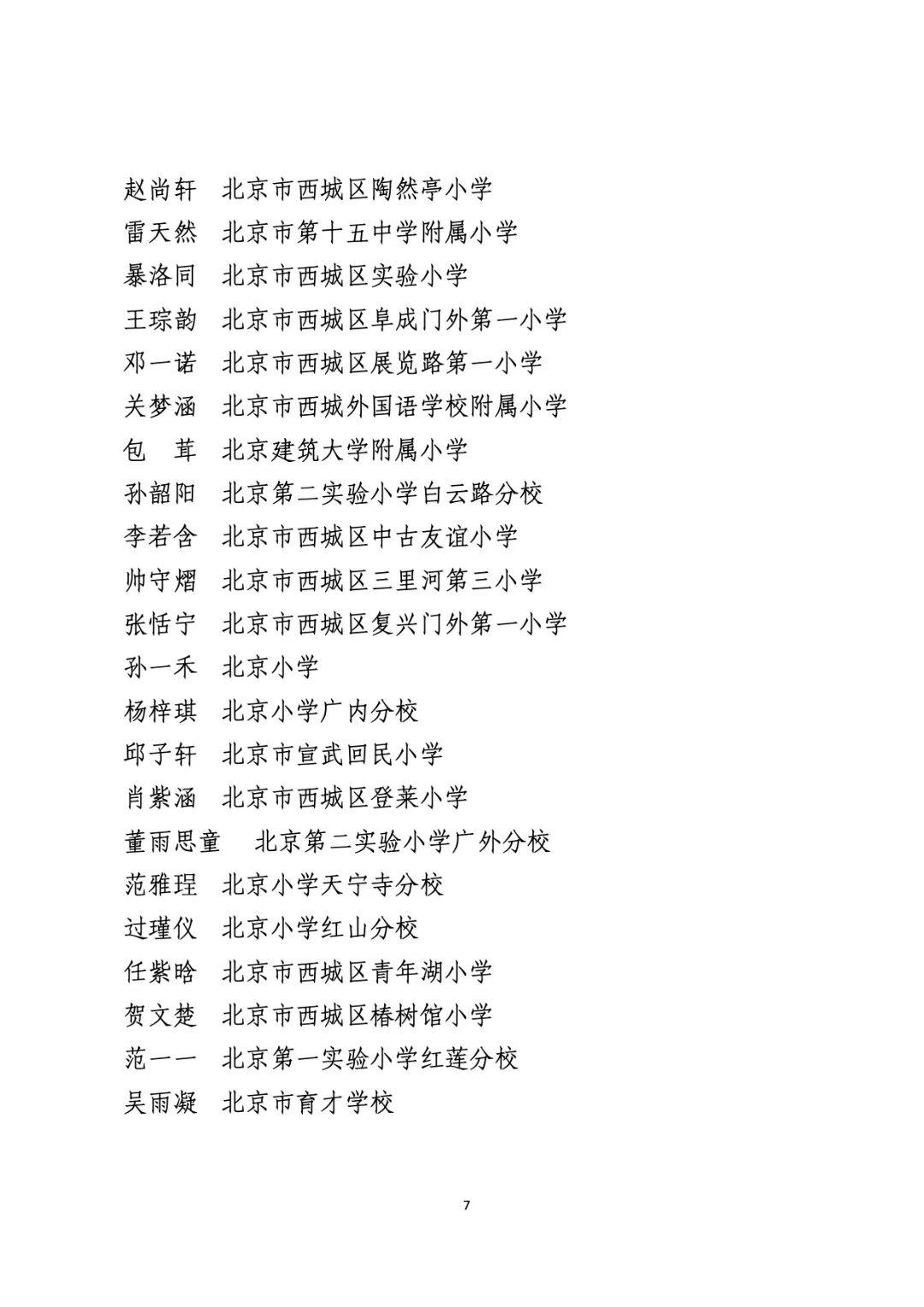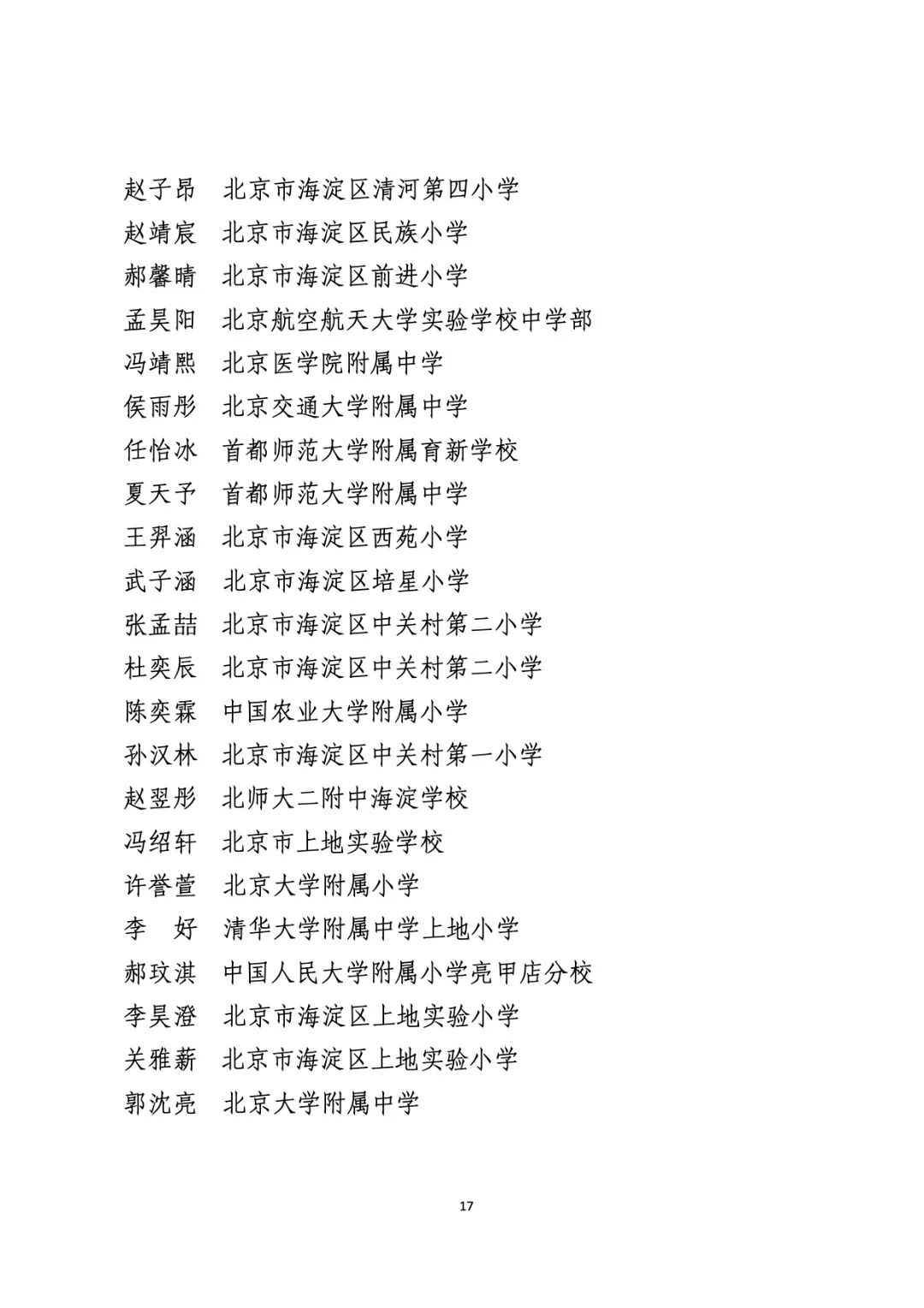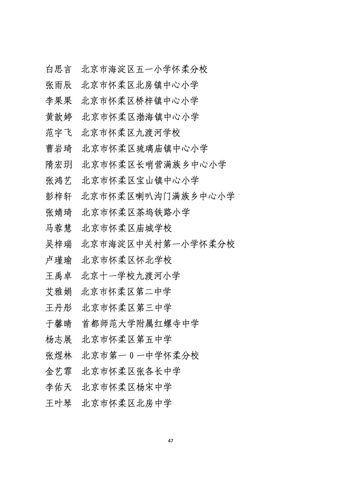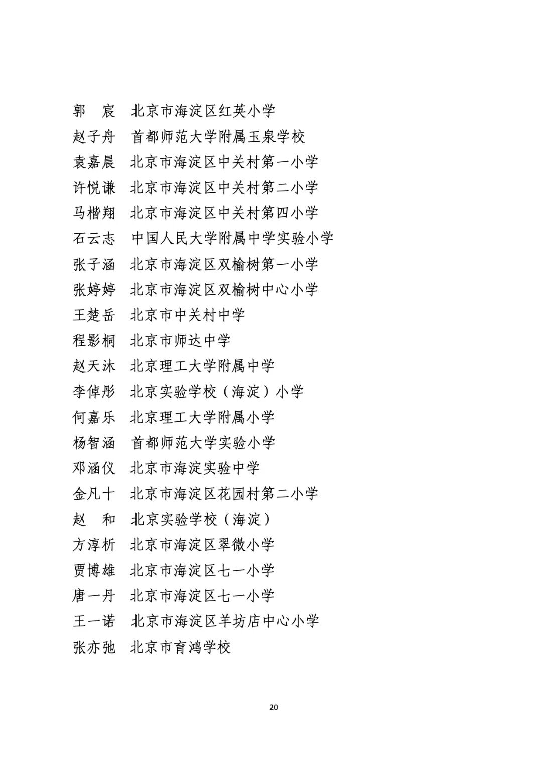2021年度北京市“红领巾奖章”四星章个人表彰名单