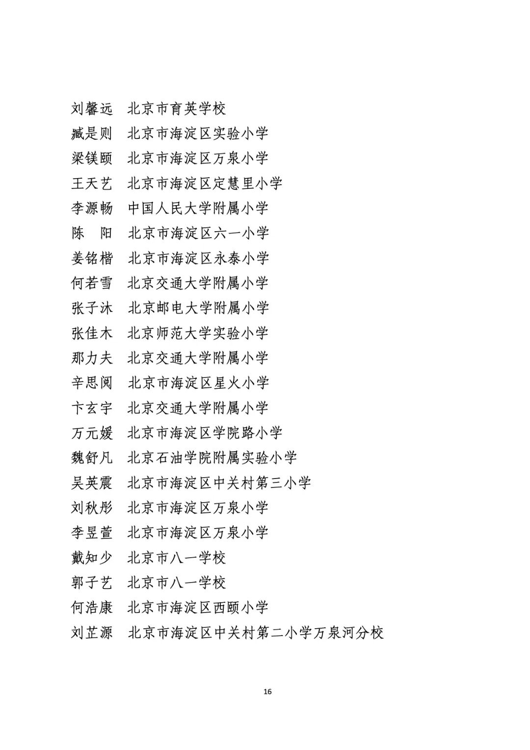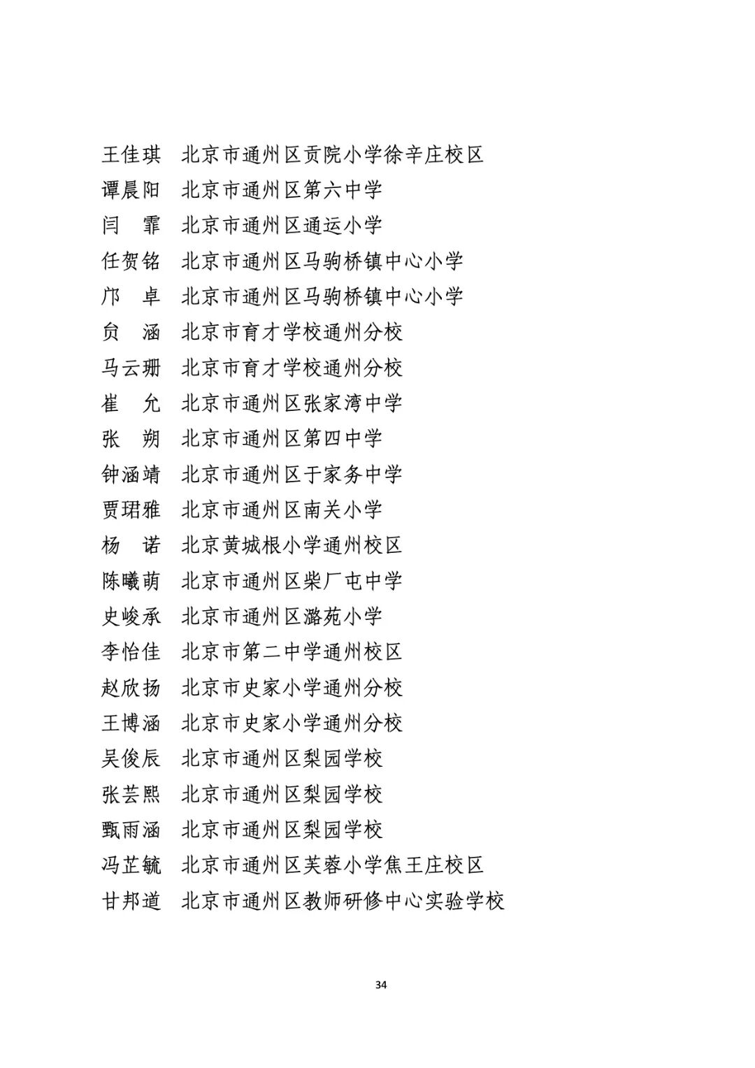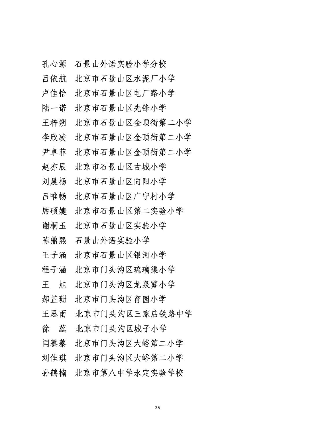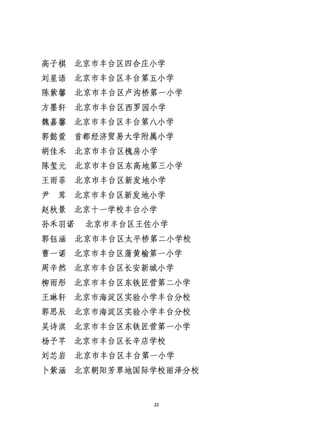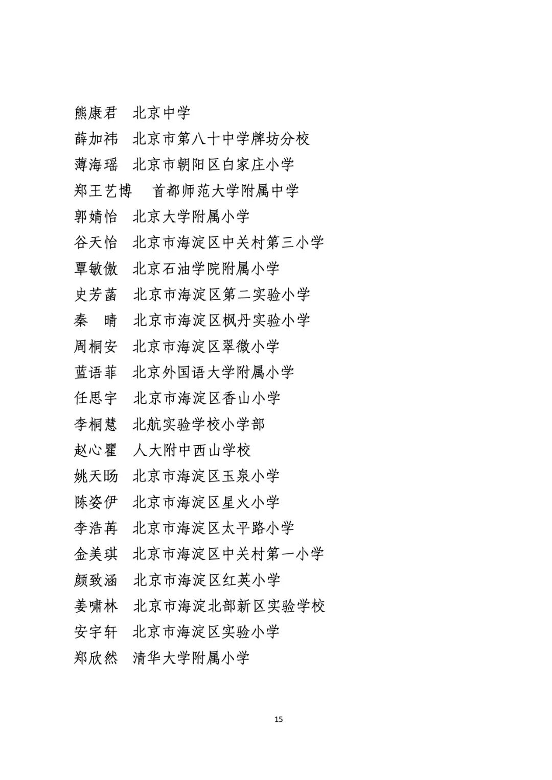 2021年度北京市“红领巾奖章”四星章个人表彰名单