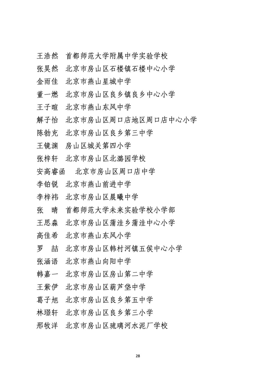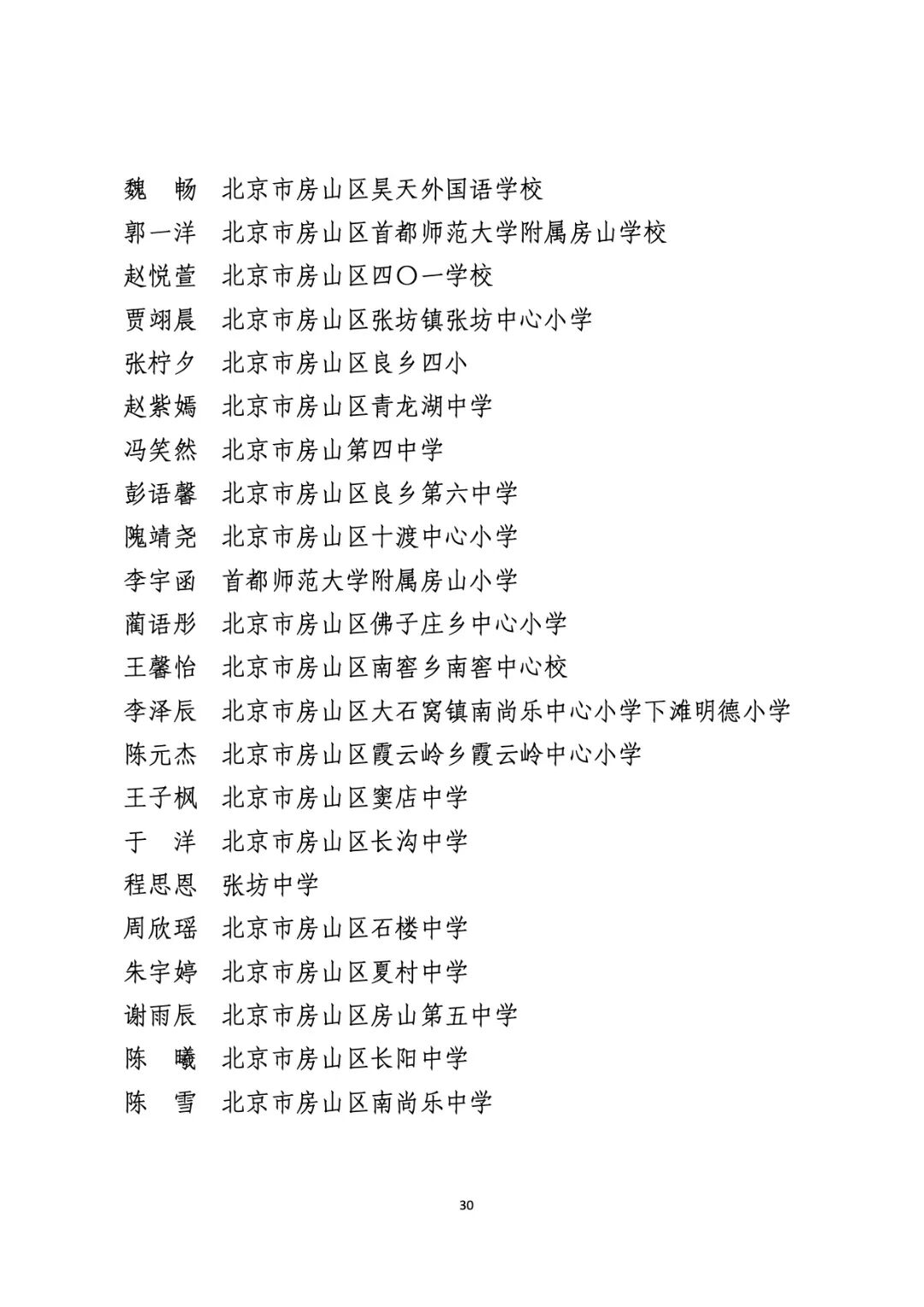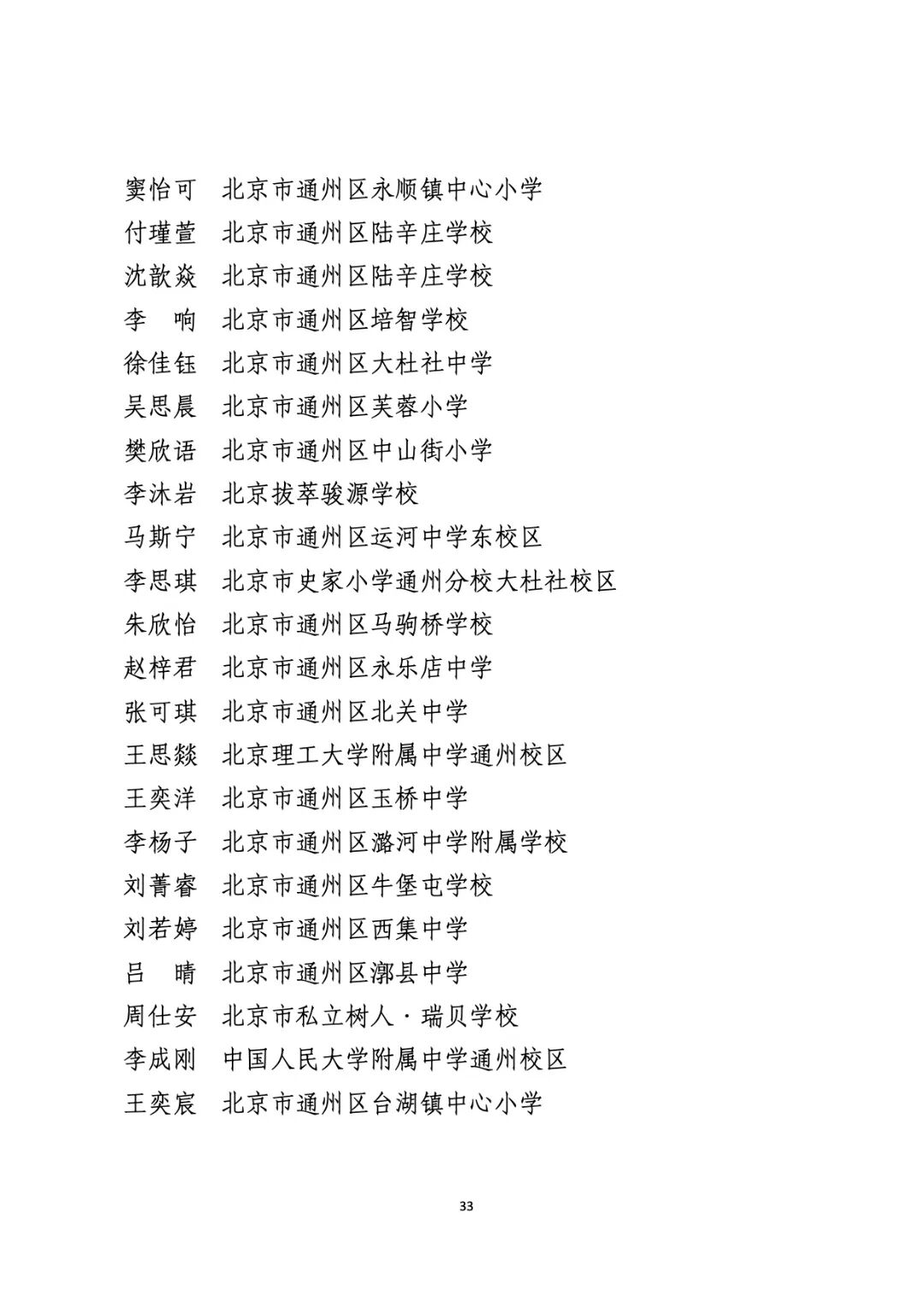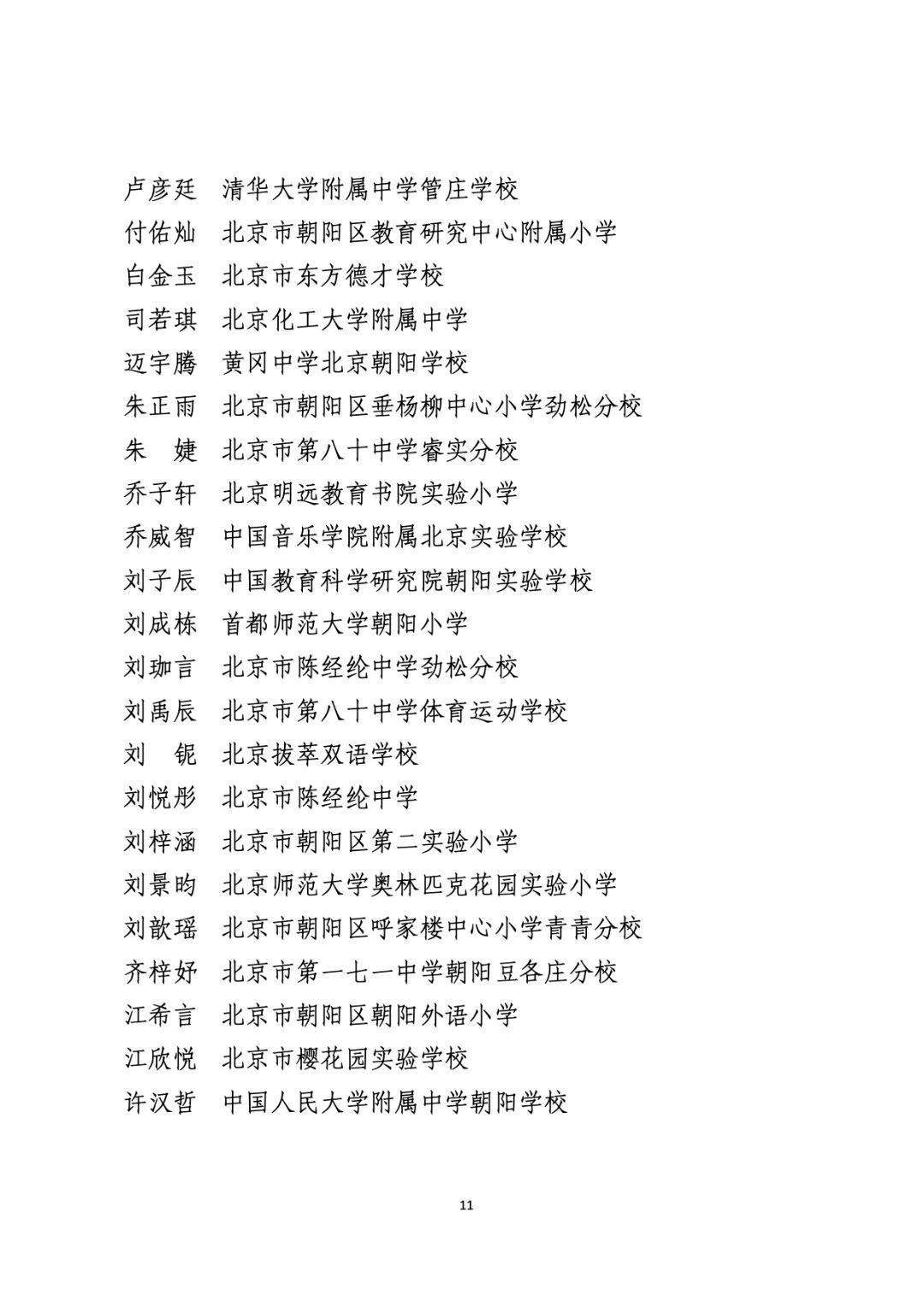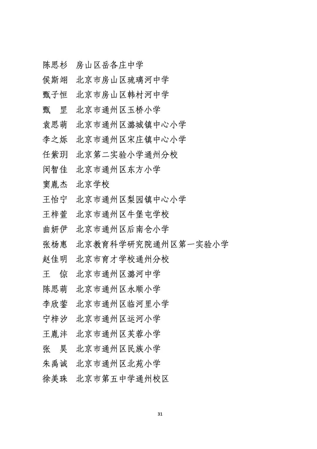 2021年度北京市“红领巾奖章”四星章个人表彰名单