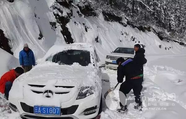 经过3个多小时的摸索,12时许,救援队伍到达了孔雀雪山最顶峰,见到了被困的其中1辆车。该车驾驶人说:“我们这辆车陷入积雪较浅,被先行赶到的派出所民警解救了出来,因为车里有两名年事已高的老人,我就载着他们先往下撤,另外一辆车因陷入积雪较深,还未脱险。”