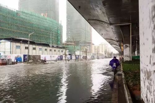 海口市海秀中路积水影响车辆通行。