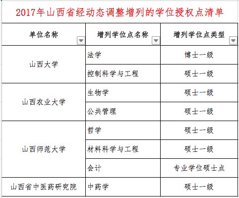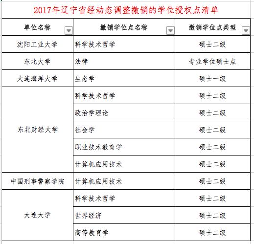 本次“通知”中公布了2017年经动态调整“撤销的学位授权点清单(分省)”和”增列的学位授权点清单(分省)“。