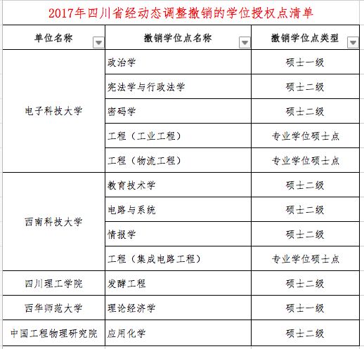 教育部官网显示,近日,国务院学位委员会发布"关于下达2017年动态调整撤销和增列的学位授权点名单的通知"。