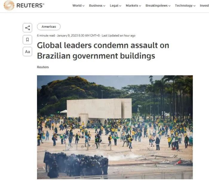 与此同时,多个国家和机构领导人及官员对冲击巴西国家权力机构的行为予以谴责,并对巴西总统卢拉表示支持。