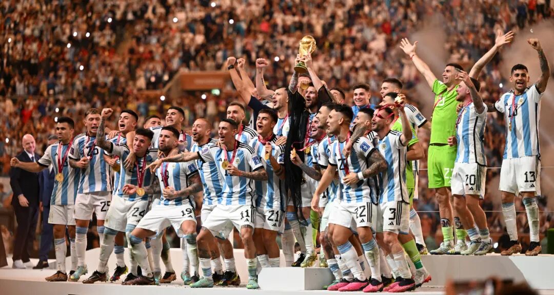 2022年12月18日,阿根廷队经过点球大战,总比分7:5战胜法国队夺得卡塔尔世界杯冠军。