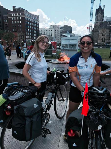 本想做儿童医生的谷园(Alison GU),在大学三年级时,完成了骑自行车从渥太华到本拿比的壮举。这个活动历经7个多星期,跨越3000多公里,旨在帮助原住民筹款,挑战横山输油管项目的环境评估程序。这段经历让她看到了很多社会和环境问题,对她触动也非常大,对自己的人生规划产生了新的想法。
