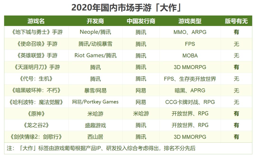 近日,葡萄君整理了一份2020年国内市场手游大作名单,罗列了10款预计在年内上线的产品。根据统计,腾讯、网易或许都将在今年拿出杀手锏,其他厂商也各出奇招,堪称「神仙打架」。