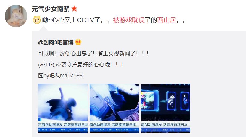 这个想法并非空穴来风,郭炜炜曾数次「被迫出道」,被《剑网3》玩家推上饭圈阵地微博闪耀榜,有不俗的话题效应。就这样,这一IP动画有了它的第一代主角——郭萌萌。