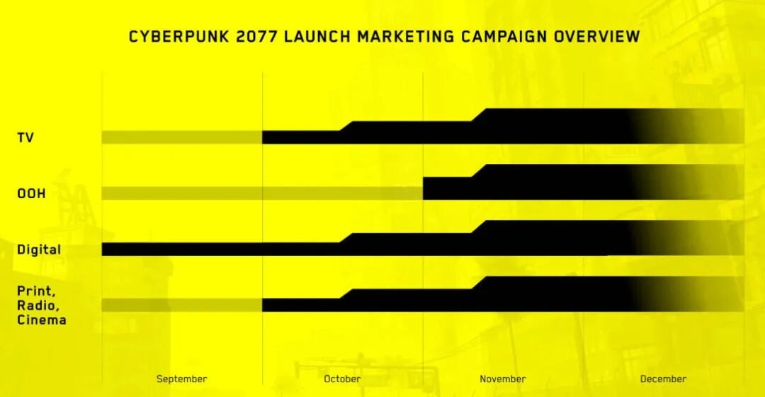 因此,CDPR 这次在宣发上继续投以重金。该公司总裁 Adam Kicińsk 曾对外披露,《巫师3:狂猎》营销费用不少于4000万美元,而《赛博朋克2077》的整体投入约为1.2亿美元,其中营销费用要远高于前者。