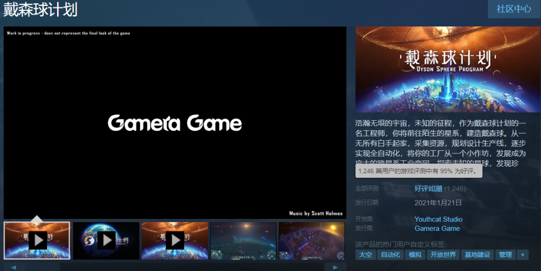 目前,这款银河题材的模拟经营类游戏已至好评如潮,在Steam上获得了95%的好评。国内外社区都有不少玩家因为《戴森球计划》跨越星际银河的经营玩法,深陷「戴森球」基建,不能自拔。