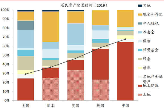 那么除了他们,身处这个行业内的绝大多数人呢?我们不妨来看几组数据。根据中金统计的居民资产配置,我国居民2019年资产的60%以上,被地上建筑占据。