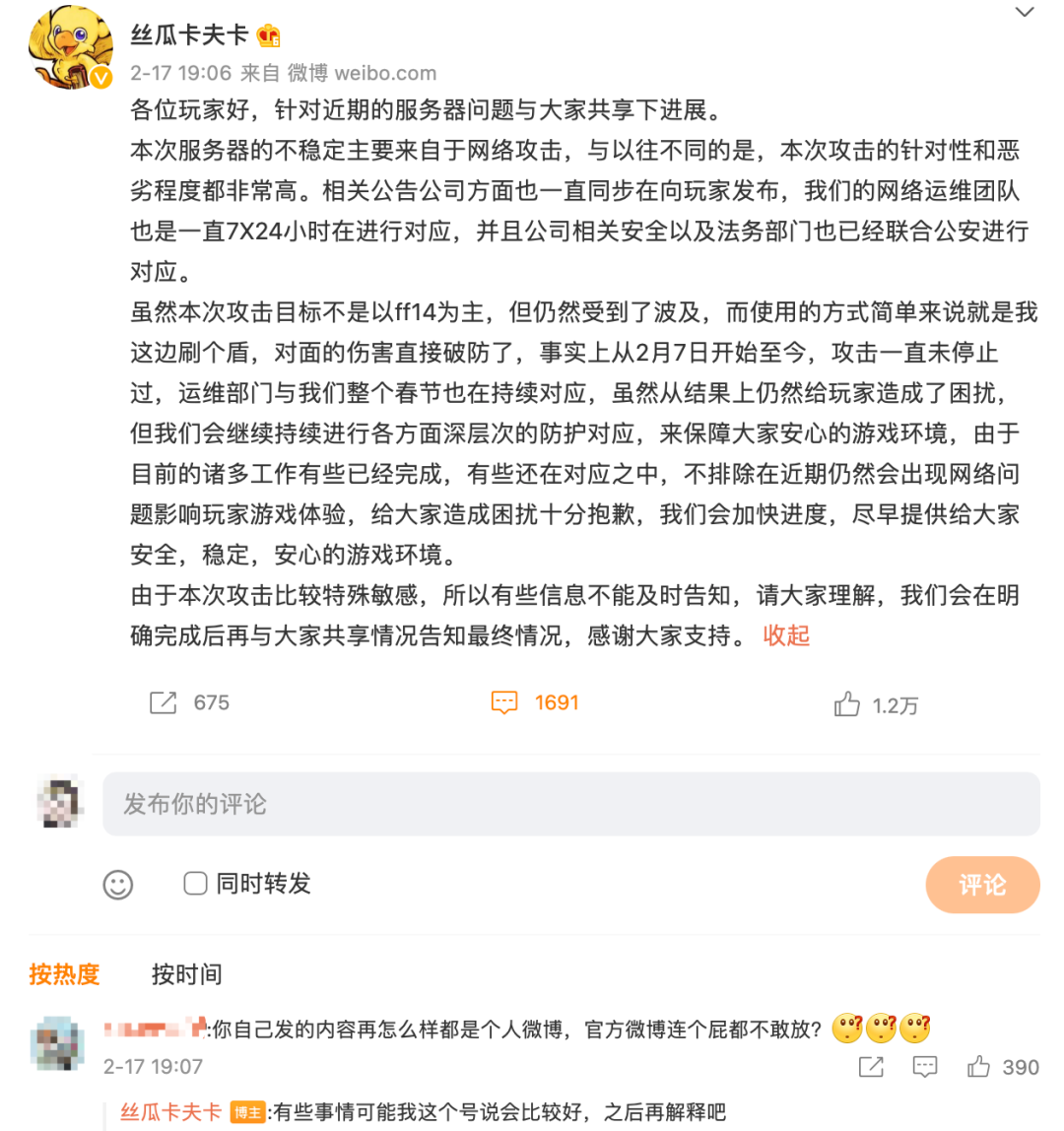 不过,尽管困难重重,留下来的人也还在坚持——不光是项目组,还有喜欢《FF14》的玩家。