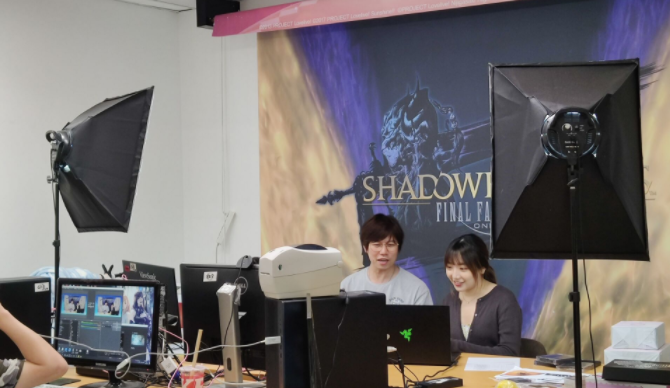 直播的房间在办公室最里面,需要穿过狭窄的过道,进门处堆放着一些杂物,屋子怎么看都像是用仓库改造的,里头稍微宽敞一些的地方用一张巨大的《FF14》5.0海报当作背景板。