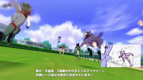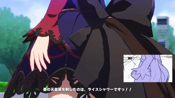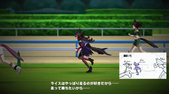 综上,在技能Cut in制作时,关键在于如何在极小的范围内增加信息量,呈现一个魅力十足的画面效果。故事赛当中,则挑战了如何将史实故事转化为更有内涵的影像表现。然后分镜组也和各个部门配合,追求着更能呈现赛马娘魅力的分镜。今后也会为了喜爱赛马娘的训练家们,提供更好更有趣的内容。