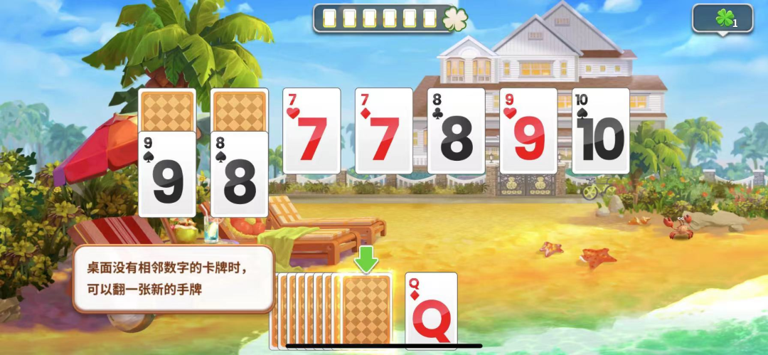 粗略一算,现在已经有6~7款,除了三消+模拟经营的《消消庄园》之前已经存在,另有几款具体玩法形态各异,但都带有模拟经营要素的游戏。比如贝塔游戏的《Solitaire Home Design》: