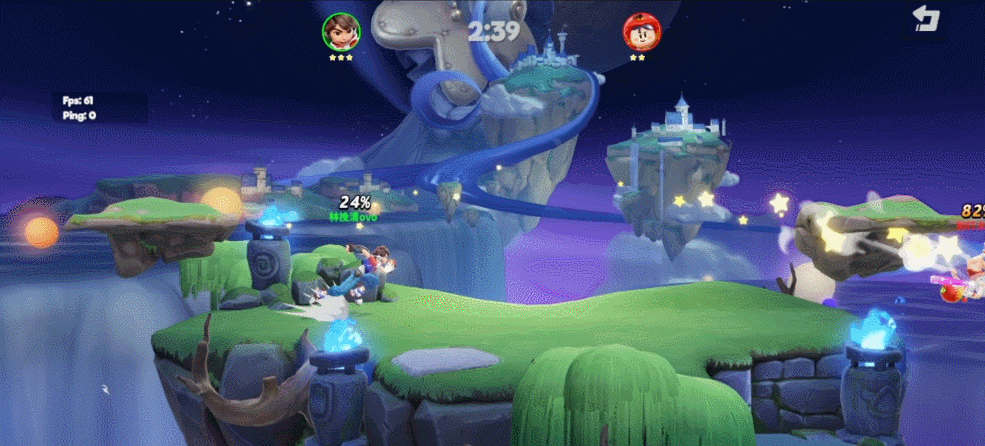 首先,玩家可以在《派对之星》里面实现许多平台格斗游戏中的微操,比如短按跳跃键可以实现小跳;在角色跳跃至最高点时往下滑动方向键,可以实现快速下降;当角色被击打到平台的一瞬间按下防御可以受身,避免被连续追击……想要熟练使用这些微操,玩家免不了一段时间的练习。
