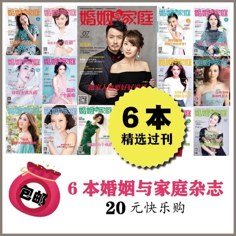 6本《婚姻与家庭杂志》精选过刊,20元快乐购,还包邮哦~活动快结束了,大家不要错机会哦!戳我购买小婚家福袋