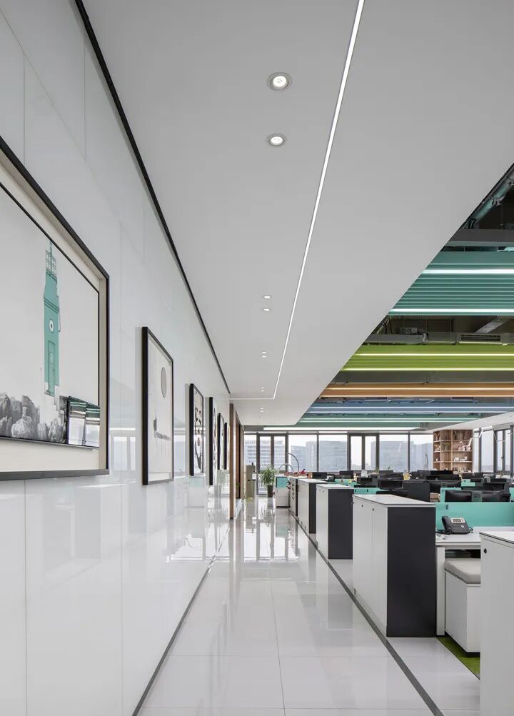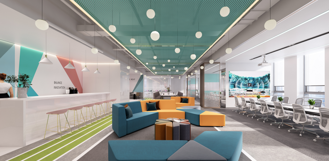 顶面上以“蓝天白云”的设计让置身于都市办公空间的白领们暂时摆脱“钢筋水泥”的束缚,抬头也能看到诗与远方。