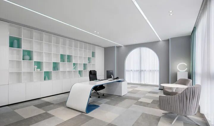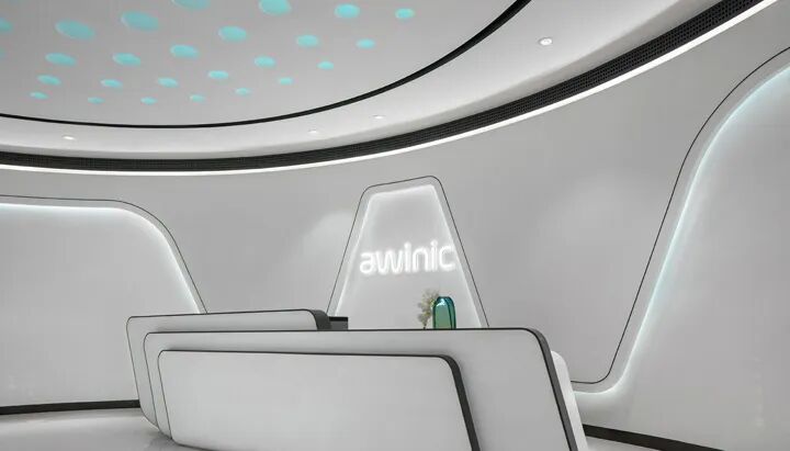 副总裁办公室的弧线设计优美简洁,充满灵动感,以awinic的五个字母为设计元素融入整个立面空间,凸显企业品牌文化。