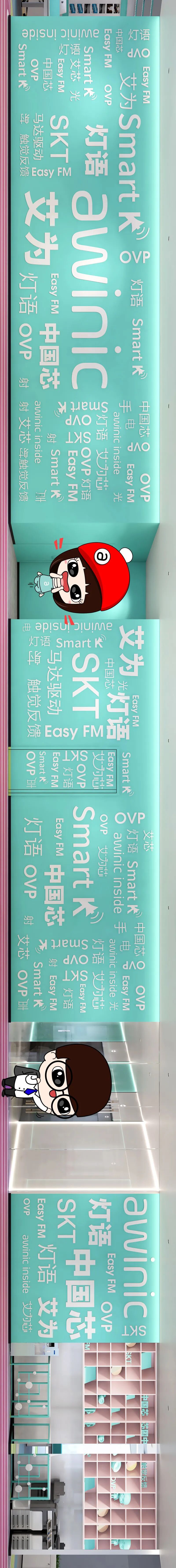 办公区过道的背景墙上悬挂着六幅以艾为核心产品为寓意的“中国芯”装置立体画,彰显“艾为人”在制造中国芯的道路上坚定不移的决心和担当。