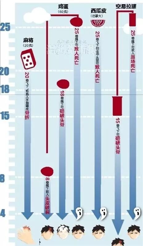 高空坠物的威力远比人们想象的要大。一块不起眼的小小西瓜皮,从25楼的高度飞下,如砸中头部可致人死亡。