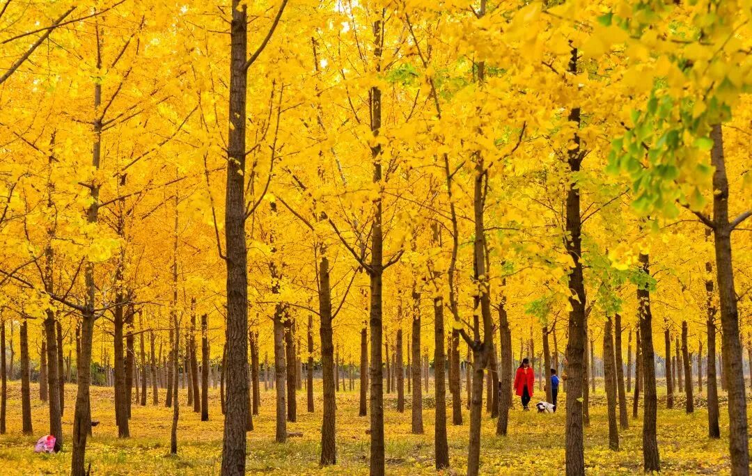 随风飘落的银杏和满地的金黄,仿佛让人走进了金色的花海世界,醉人美景不过如此!