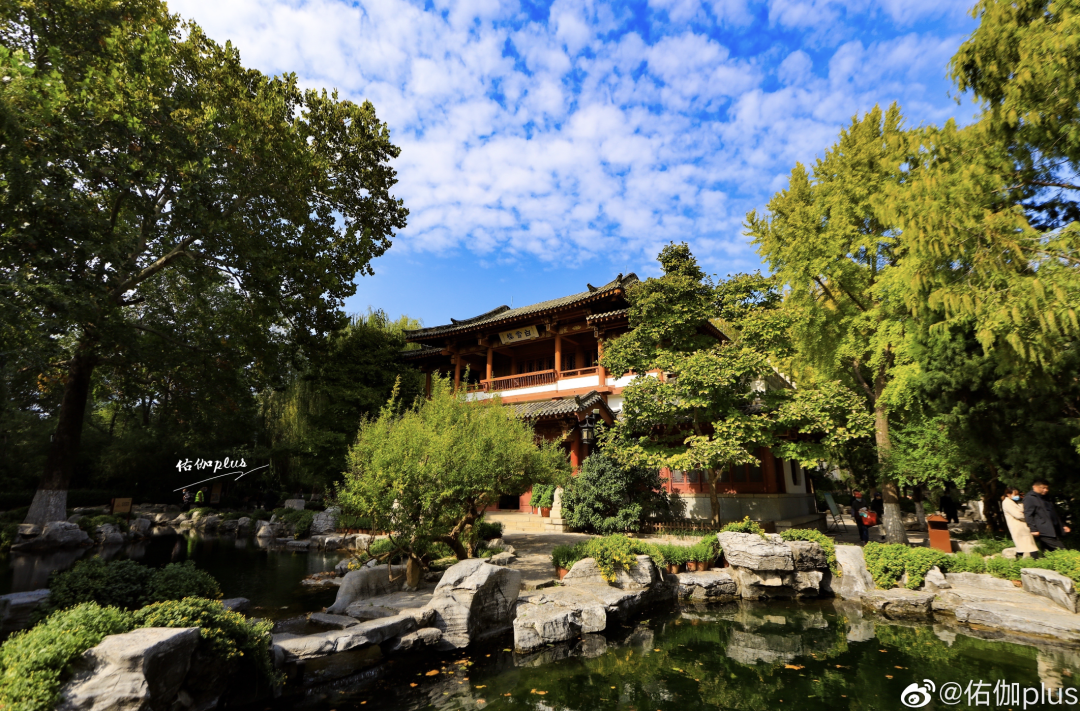 “明镜池开秋水净,冷浸一天空翠”。济南秋日的天空,不似夏日那般热烈,也不似冬日那般净白,而是一种湛蓝高旷的淡然。