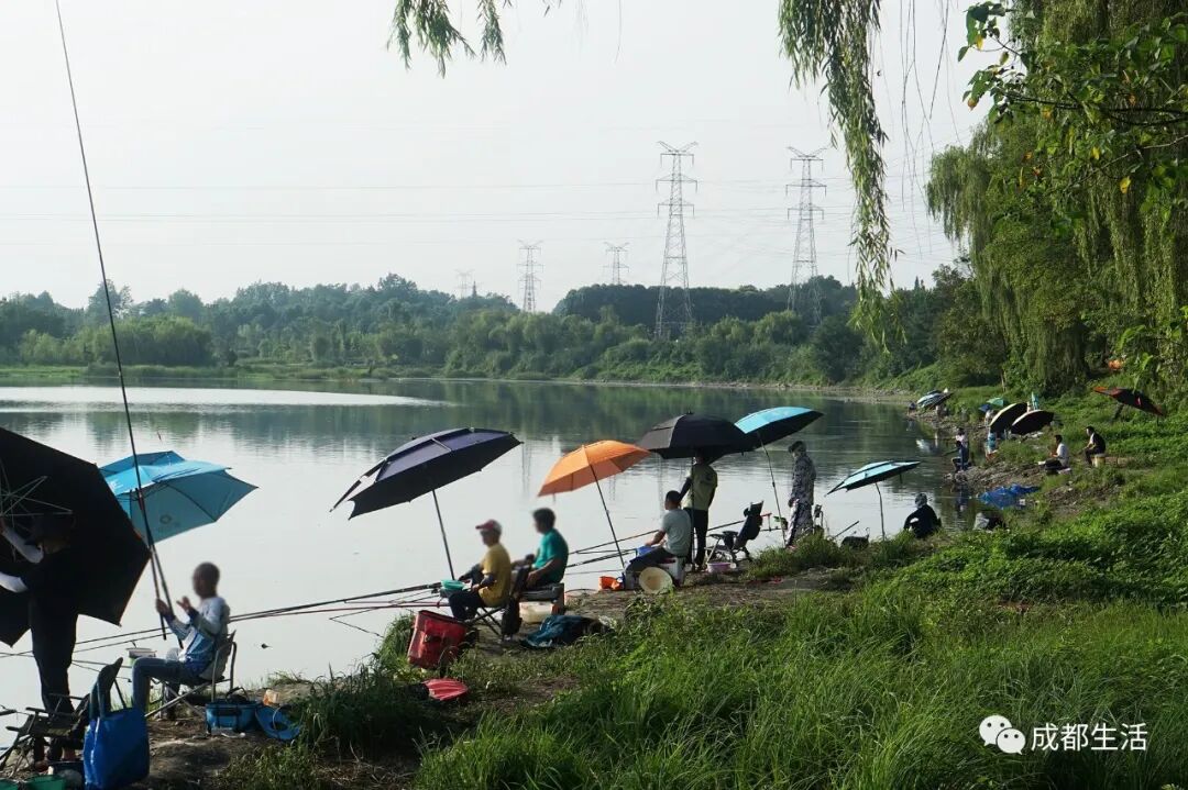沿湖边坐了一排钓鱼的哥,大热天全副武装晒起也要钓,可见魅力不一般了。