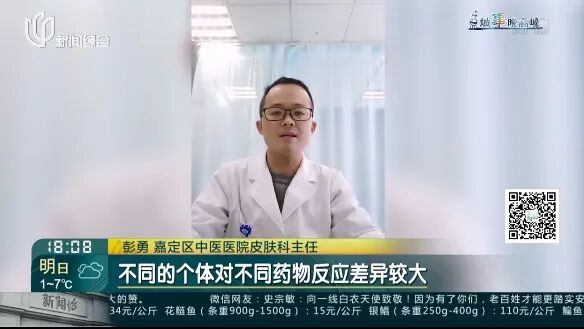 嘉定区中医医院皮肤科主任 彭勇:首先是因为有易感体质,不同的个体对不同药物反应差异较大,再就是接触或使用了致敏几率比较高的几类药物,包括解热镇痛类如阿司匹林、对乙酰氨基酚、布洛芬等,抗生素类像青霉素、磺胺、头孢类,还有卡马西平和别嘌呤醇等药物。