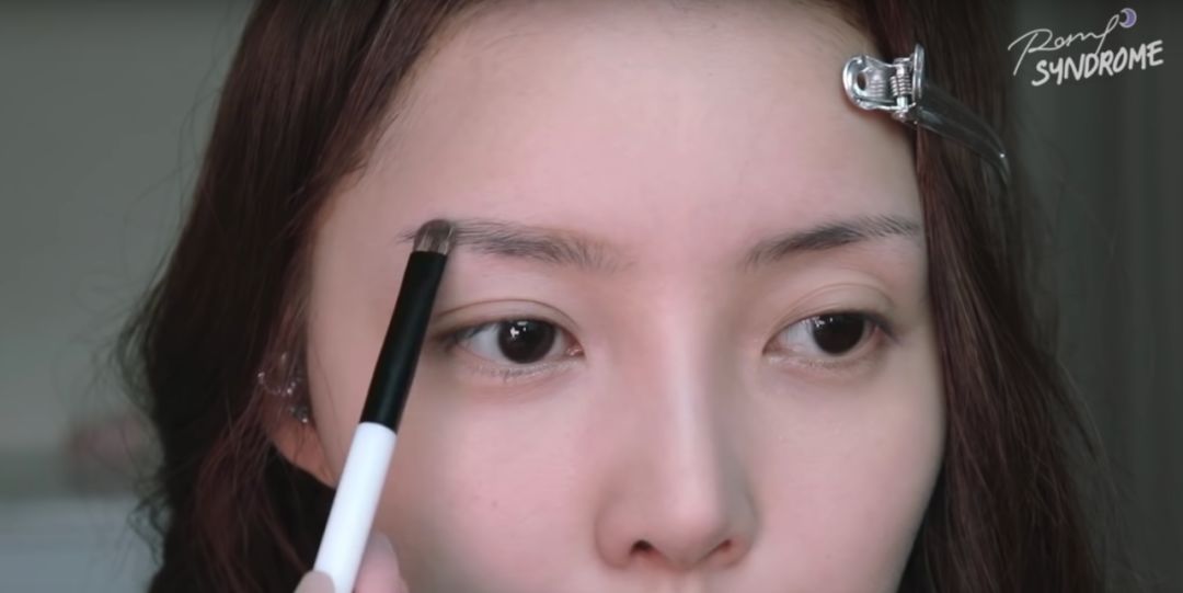 2. 用刷子修正眉部上边缘线。敲黑板,这就是刚才说的调整眉毛上缘让额头变小的方式。
