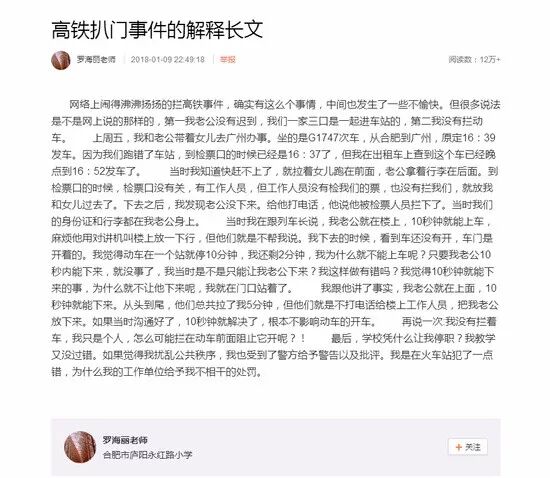 但昨天深夜微博流露疑似高铁扒门事件的解释长文