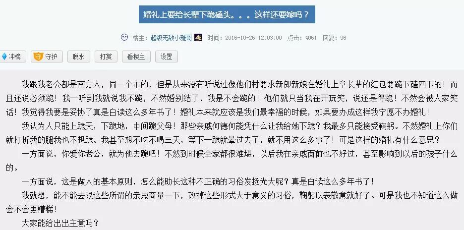 源头,是前不久天涯社区的一个帖子↓
