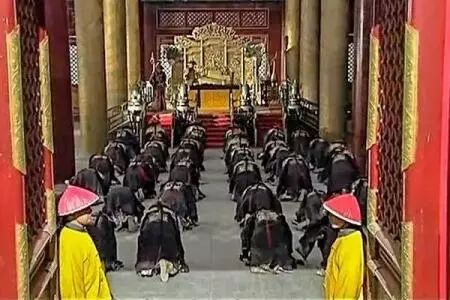 君臣之间相见的作揖礼变成下跪是在元朝,耶律楚材为了表明皇帝和蒙古贵族尊贵有别,让蒙古贵族双膝下跪朝拜皇帝,蒙古贵族都如此,大臣们更不用说了,这也逐渐成为定例,并且在明朝和清朝愈演愈烈。