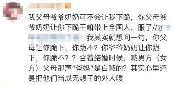 “那些亲戚何德何能凭什么让我给她下跪?我最多只能接受鞠躬。”