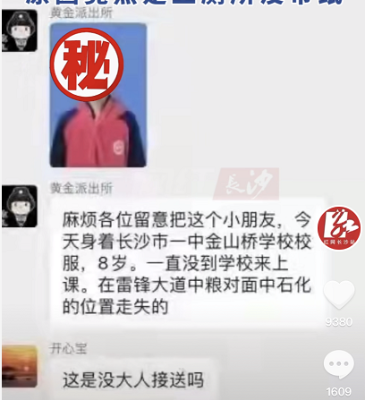 “8岁男生一直没到学校来上课,在雷锋大道中粮对面中石化的位置走失”……11月4日早上十点多,在长沙某社区微信群里,一条寻人求助让大家的心悬了起来。