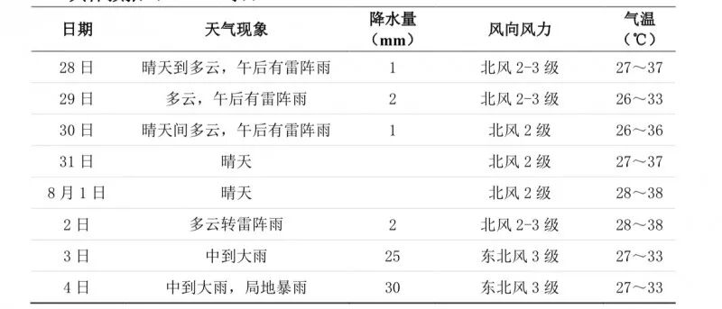 7月31日至8月2日白天,晴天为主,最高气温38°C左右