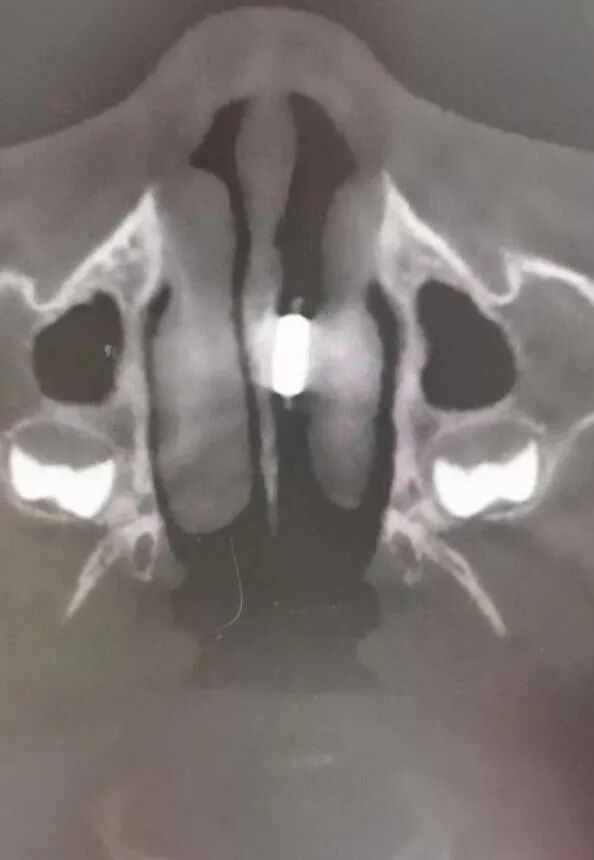 口腔X光片,竟显示出鼻腔有亮白色的高密度异物