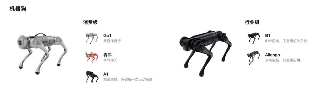 杭州宇树科技有限公司(Unitree)就有3款消费级机械狗,售价在1.5万元到10万元不等。目前社交媒体视频中经常出现的银色机械狗就是宇树科技的GO1机器人,售价1万5千元到2万元之间。官方介绍,GO1机器人是一种智能伴随仿生机器人,可载重3公斤,自重约12公斤。售价高达10万的A1机器人则是通体黑色,与GO1相比,A1移动速度更快,可以伴随主人跑步,载重也达到5公斤。