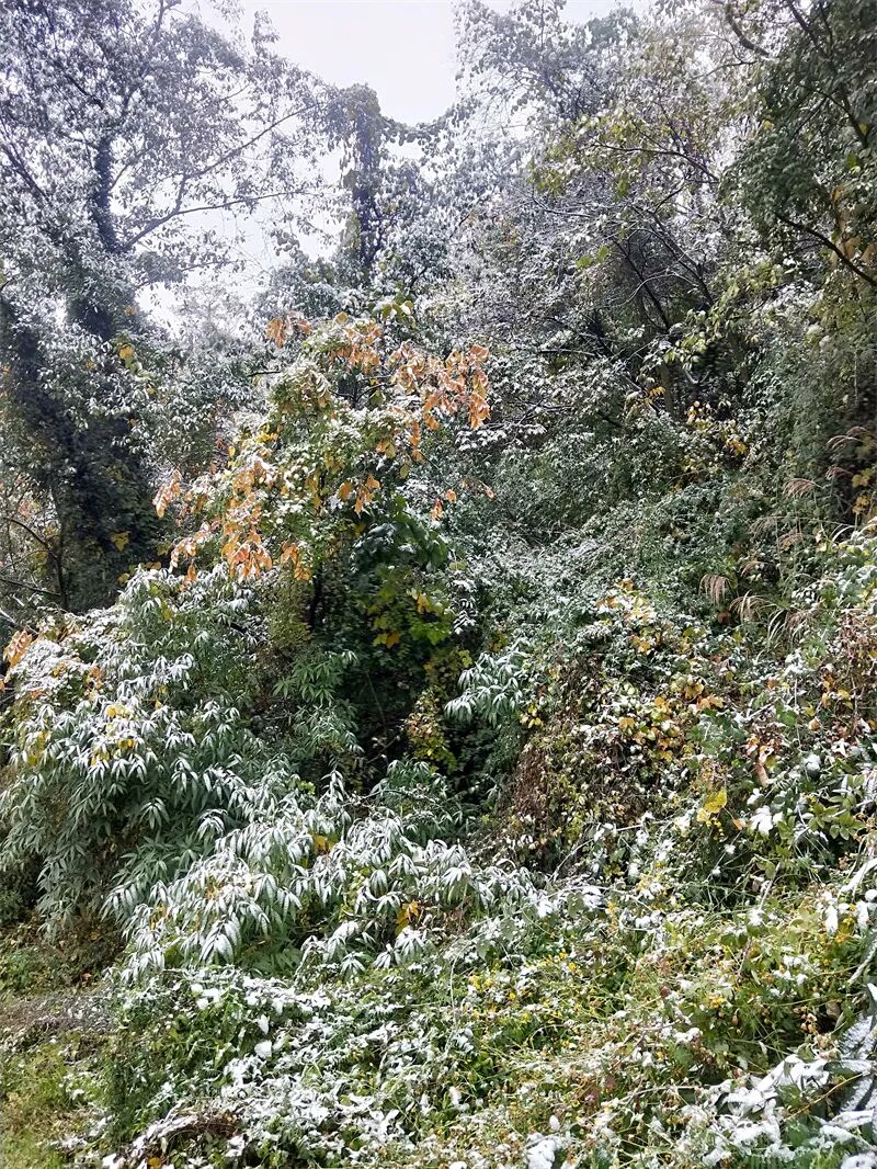 柏合街道长松村境内下起了飘飘扬扬的小雪